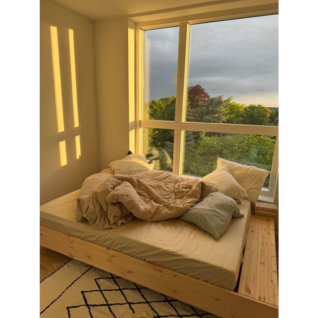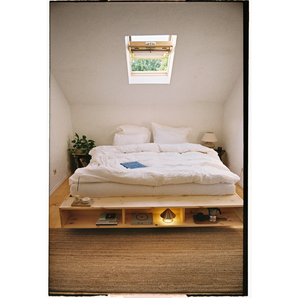Postel MERGE nejlépe vynikne v interiéru, který staví na jednoduchosti a přírodních materiálech. K posteli se hodí jednoduché noční stolky z masivního dřeva nebo v čistém, nenápadném designu, které nechají vyniknout samotnou konstrukci postele. Atmosféru prostoru podpoří měkký koberec s jemnou strukturou a doplňky z přírodních materiálů, jako je keramika, dřevo nebo textil. Teplé, tlumené osvětlení v podobě nástěnných nebo stojacích lamp vytvoří příjemné světelné akcenty a zvýrazní klidný charakter ložnice.