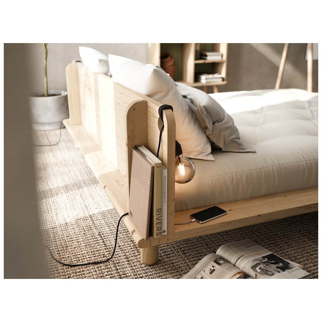 Designová postel PEEK dánské značky nádherného dánského dodavatele KARUP. PEEK zaujme svým elegantním vzhledem a čistými liniemi, které přirozeně zapadnou do moderní i skandinávsky laděné ložnice. PEEK je důmyslným spojením postele a nočního stolku, které šetří místo a vypadá skvěle. Její široký dřevěný rám poskytuje praktický odkládací prostor pro telefon, knihy nebo jiné nezbytnosti, které chcete mít po ruce. Černé lakované provedení dodává posteli moderní, dramatický a sofistikovaný vzhled. Jedinečným prvkem čela postele jsou dva chytře umístěné otvory. Ty slouží k uchycení dvou lamp, které jsou součástí balení (bez žárovek). Kabely od lamp lze snadno omotat a vytvořit tak útulné a funkční osvětlení pro večerní čtení. Otvory lze případně využít i pro protažení nabíjecích kabelů k vašim zařízením.