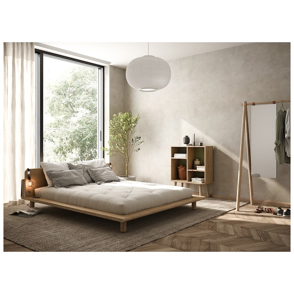 Postel PEEK nejlépe vynikne v interiéru, který staví na jednoduchosti a přírodních materiálech. K posteli se hodí jednoduché noční stolky z masivního dřeva nebo v čistém, nenápadném designu, které nechají vyniknout samotnou konstrukci postele. Atmosféru prostoru podpoří měkký koberec s jemnou strukturou a doplňky z přírodních materiálů, jako je keramika, dřevo nebo textil. Teplé, tlumené osvětlení v podobě nástěnných nebo stojacích lamp vytvoří příjemné světelné akcenty a zvýrazní klidný charakter ložnice.
