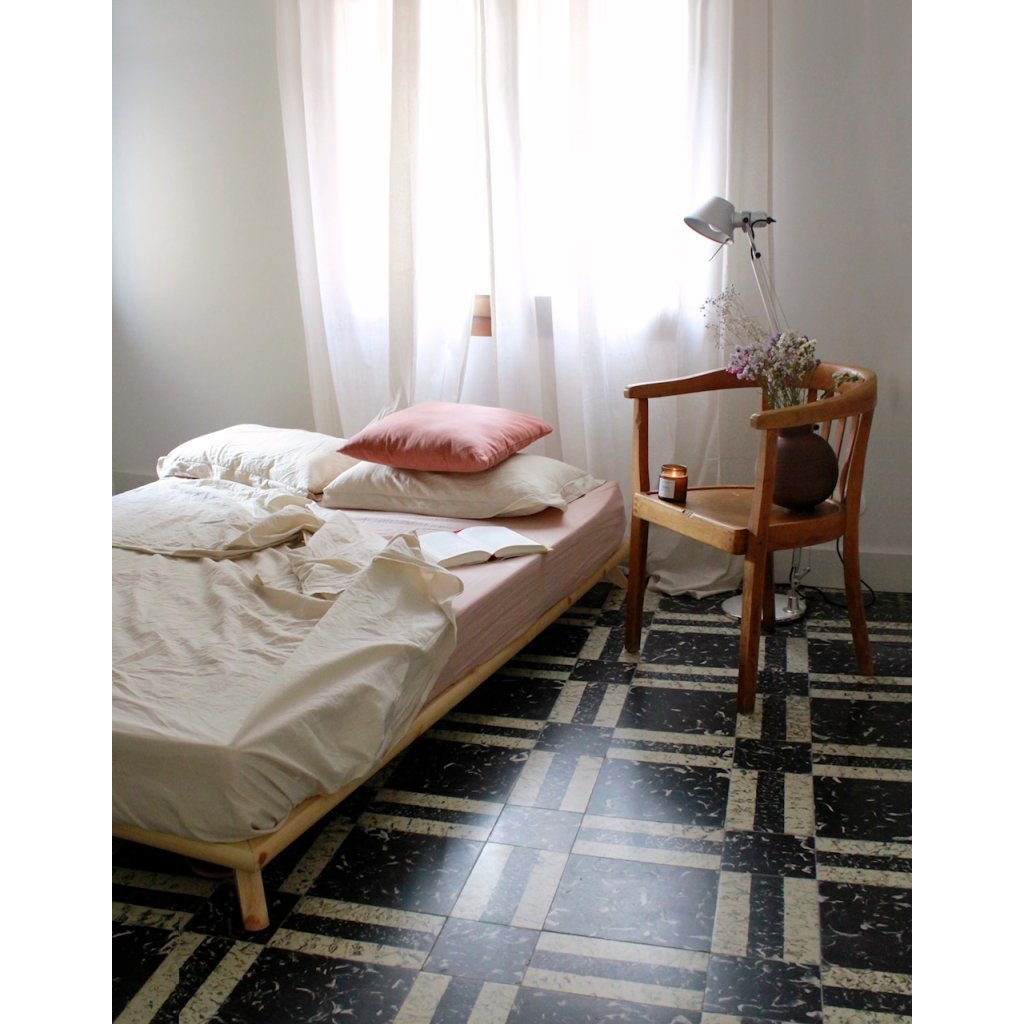 Postel SENZA nejlépe vynikne v interiéru, který staví na jednoduchosti a přírodních materiálech. K posteli se hodí jednoduché noční stolky z masivního dřeva nebo v čistém, nenápadném designu, které nechají vyniknout samotnou konstrukci postele. Atmosféru prostoru podpoří měkký koberec s jemnou strukturou a doplňky z přírodních materiálů, jako je keramika, dřevo nebo textil. Teplé, tlumené osvětlení v podobě nástěnných nebo stojacích lamp vytvoří příjemné světelné akcenty a zvýrazní klidný charakter ložnice.