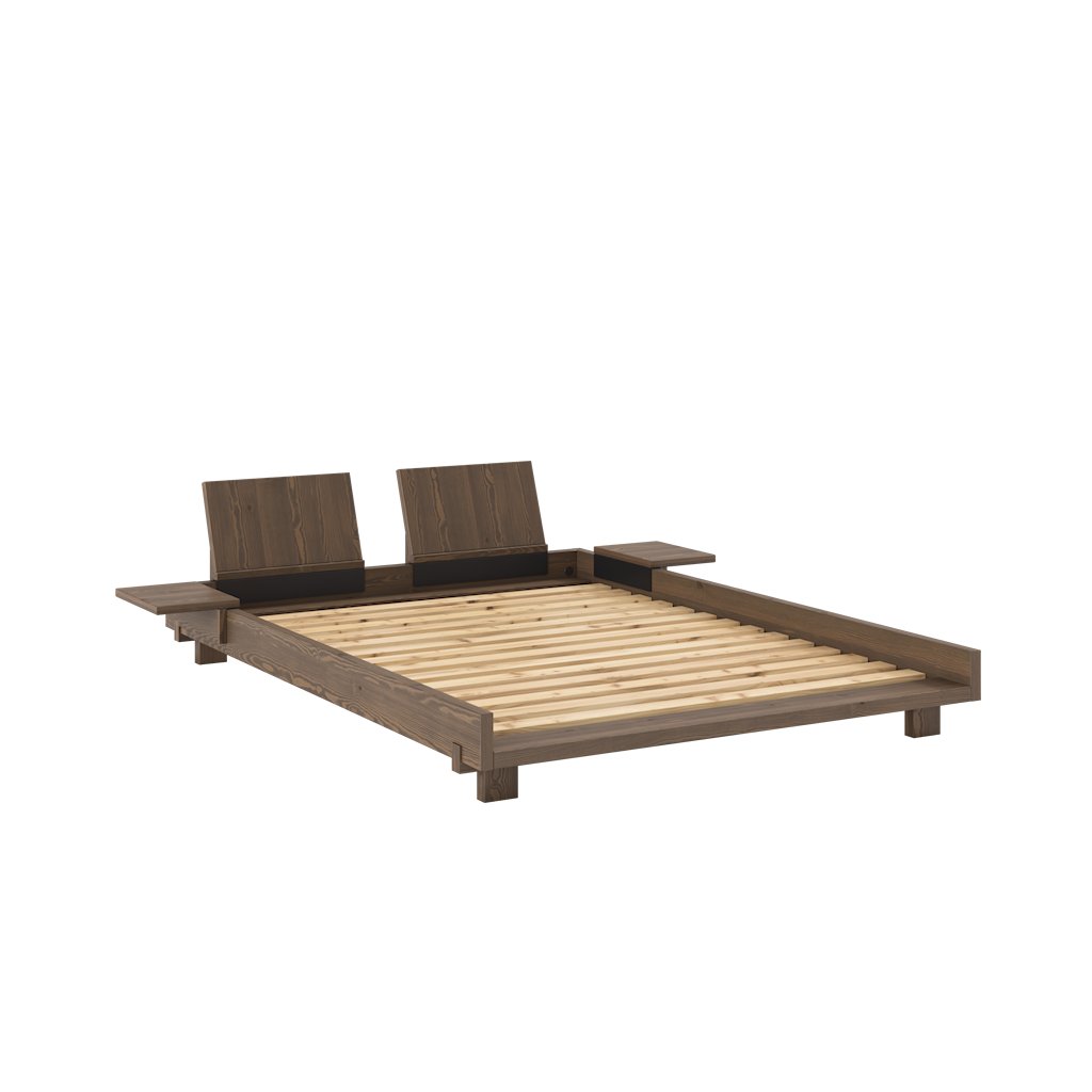 Dřevěná postel SOCIAL s nočními stolky hnědá 140x200 cm