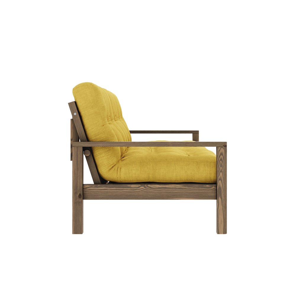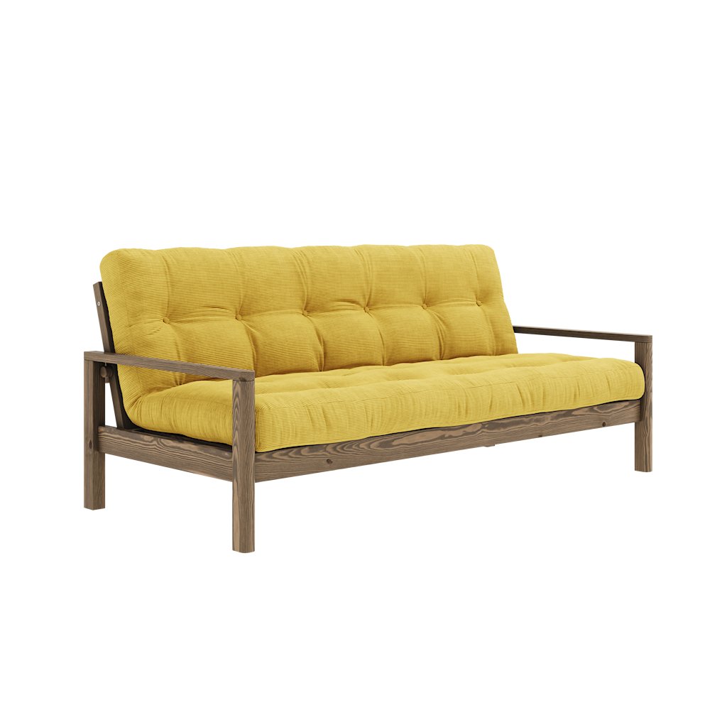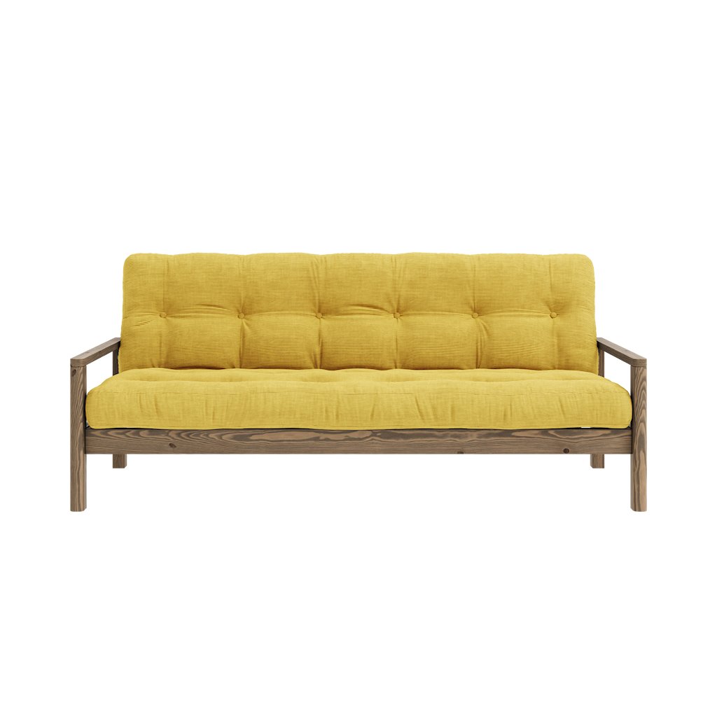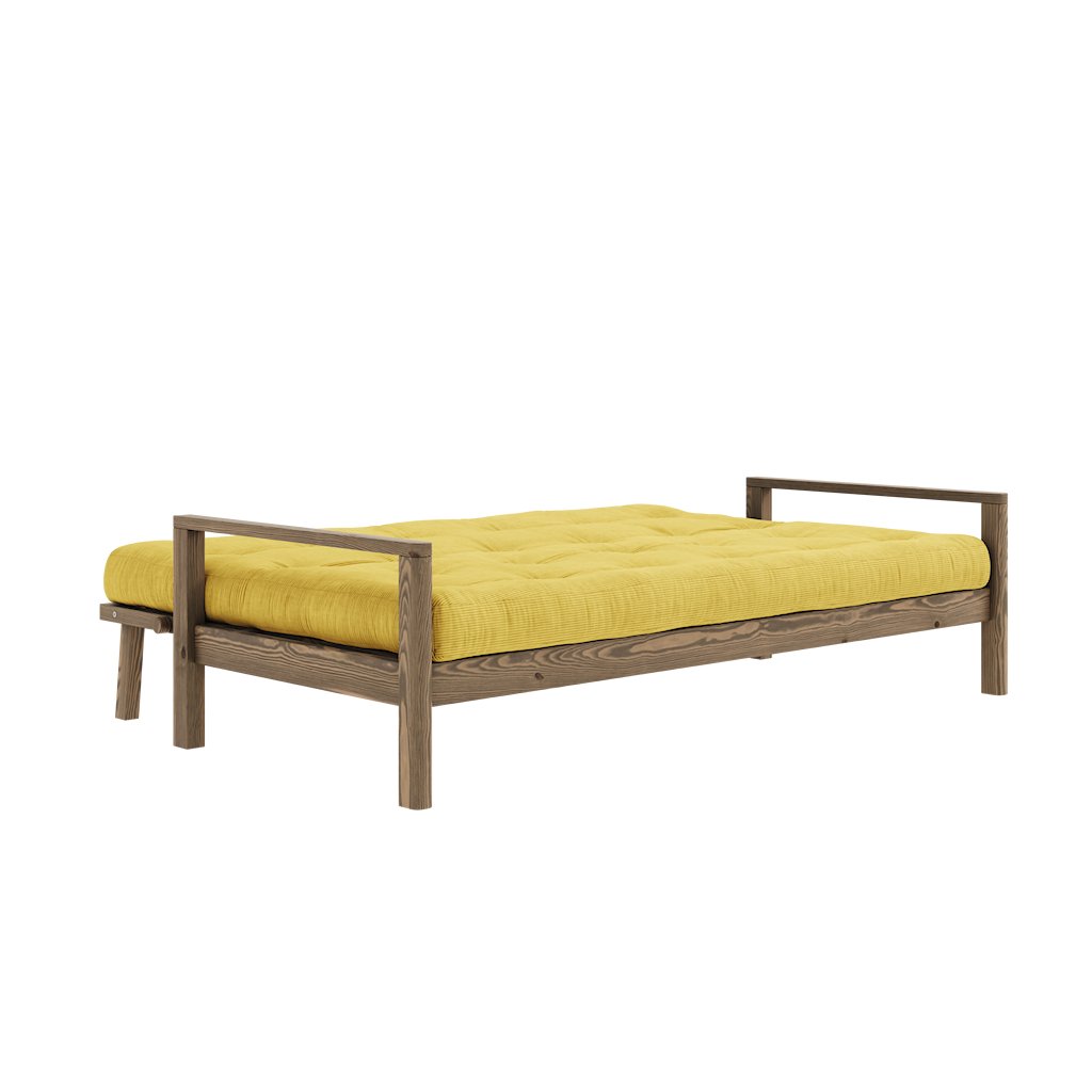 Dřevěná rozkládací pohovka KNOB od dánského výrobce stylového nábytku KARUP DESIGN. Pohovka je vyrobena z vysoce kvalitního borovicového dřeva s certifikací FSC ve tmavém provedení. Pohovka je osazena futonovou matrací s pěnovou výplní, která je potažena odolným povlakem z bavlny a polyesteru v jemné hořčičné barvě. Moderní vzhled, precizní zpracování a elegantní nohy dodávají pohovce KNOB nadčasový charakter a činí ji ideální volbou do moderních i skandinávských interiérů. Díky délce 205 cm nabízí pohodlné sezení až pro 3 osoby. Jednoduchým rozložením získáte plnohodnotné místo na spaní o rozměrech 130x205 cm, které poskytne dostatek prostoru pro pohodlné přespání vaší návštěvy.