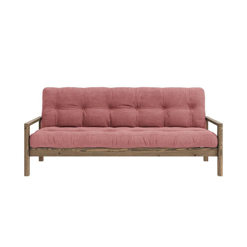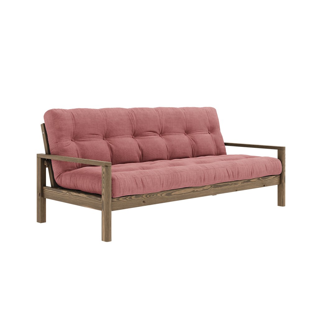 Dřevěná rozkládací pohovka KNOB od dánského výrobce stylového nábytku KARUP DESIGN. Pohovka je vyrobena z vysoce kvalitního borovicového dřeva s certifikací FSC ve tmavém provedení. Pohovka je osazena futonovou matrací s pěnovou výplní, která je potažena odolným povlakem z bavlny a polyesteru v jemné růžové barvě. Moderní vzhled, precizní zpracování a elegantní nohy dodávají pohovce KNOB nadčasový charakter a činí ji ideální volbou do moderních i skandinávských interiérů. Díky délce 205 cm nabízí pohodlné sezení až pro 3 osoby. Jednoduchým rozložením získáte plnohodnotné místo na spaní o rozměrech 130x205 cm, které poskytne dostatek prostoru pro pohodlné přespání vaší návštěvy.