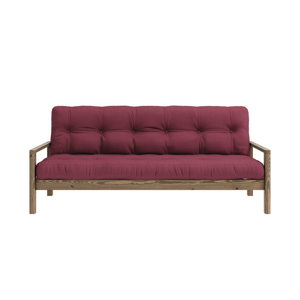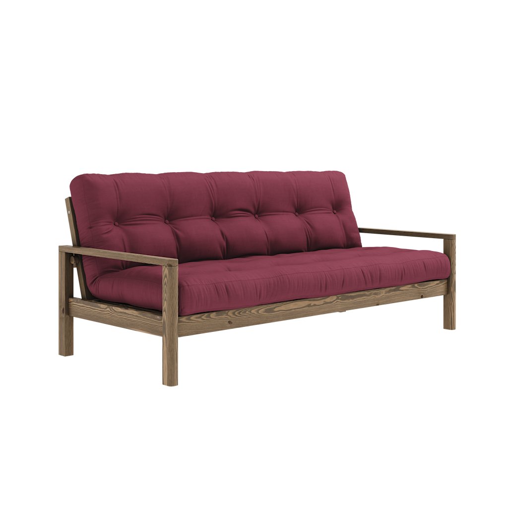 Dřevěná rozkládací pohovka KNOB od dánského výrobce stylového nábytku KARUP DESIGN. Pohovka je vyrobena z vysoce kvalitního borovicového dřeva s certifikací FSC ve tmavém provedení. Pohovka je osazena futonovou matrací s pěnovou výplní, která je potažena odolným povlakem z bavlny a polyesteru v jemné vínové barvě. Moderní vzhled, precizní zpracování a elegantní nohy dodávají pohovce KNOB nadčasový charakter a činí ji ideální volbou do moderních i skandinávských interiérů. Díky délce 205 cm nabízí pohodlné sezení až pro 3 osoby. Jednoduchým rozložením získáte plnohodnotné místo na spaní o rozměrech 130x205 cm, které poskytne dostatek prostoru pro pohodlné přespání vaší návštěvy.