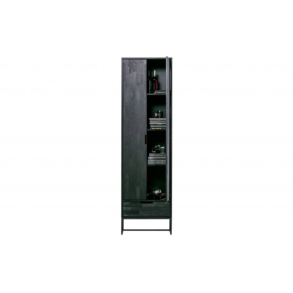 Designová skříňka SILAS od holandského výrobce kvalitního nábytku WOOOD. SILAS má spodní konstrukci z černého kovu, díky tomu má maximální stabilitu a pevnost. Desky skříňky jsou vyrobeny z masivního jasanového dřeva s cerfikátem FSC, což značí ekologicky a k přírodě šetrnou těžbu dřeva. Skříňka má 2 otevíratelná velká dvířka, za nimiž se skrývá prostor 4 velkých polic. Toto uzavírá spodní výsuvný šuplík na parádní uložení ponožek nebo spodního prádla.