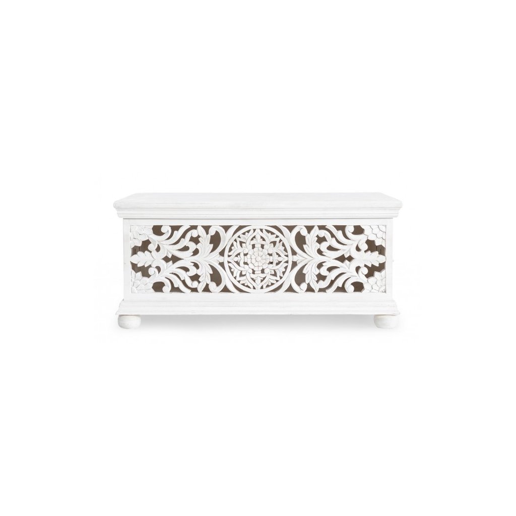 Designová truhla ALINTA od italského výrobce stylového nábytku BIZZOTTO vyrobená z krásného masivního mangového dřeva.