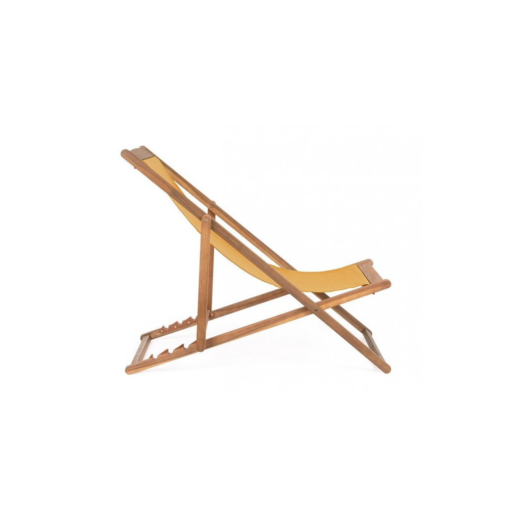 Designové venkovní lehátko NOEMI od italského výrobce stylového nábytku BIZZOTTO v provedení masivního akáciového dřeva a hořčicové látky.