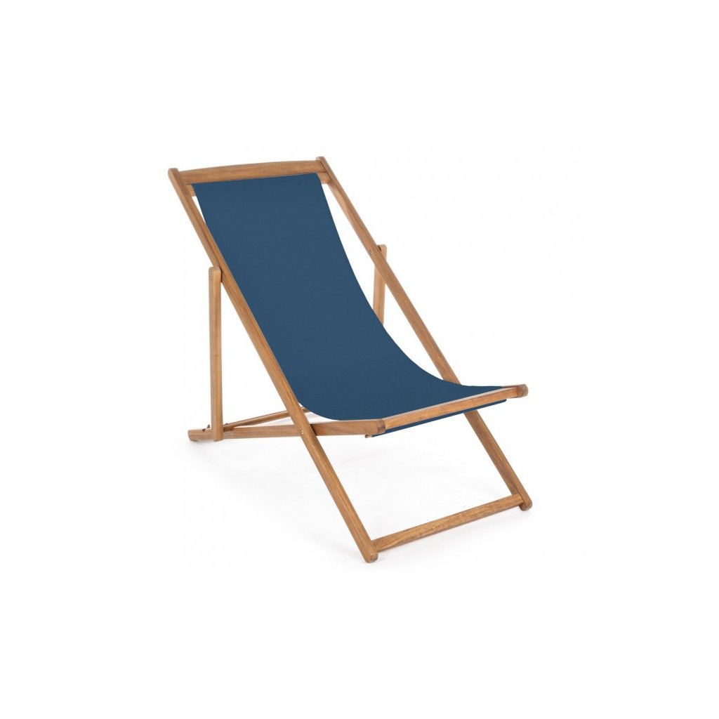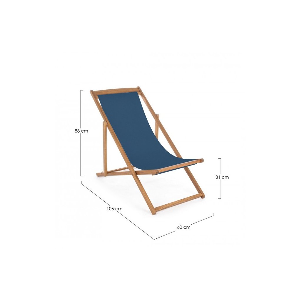 Designové venkovní lehátko NOEMI od italského výrobce stylového nábytku BIZZOTTO v provedení masivního akáciového dřeva a modré látky.
