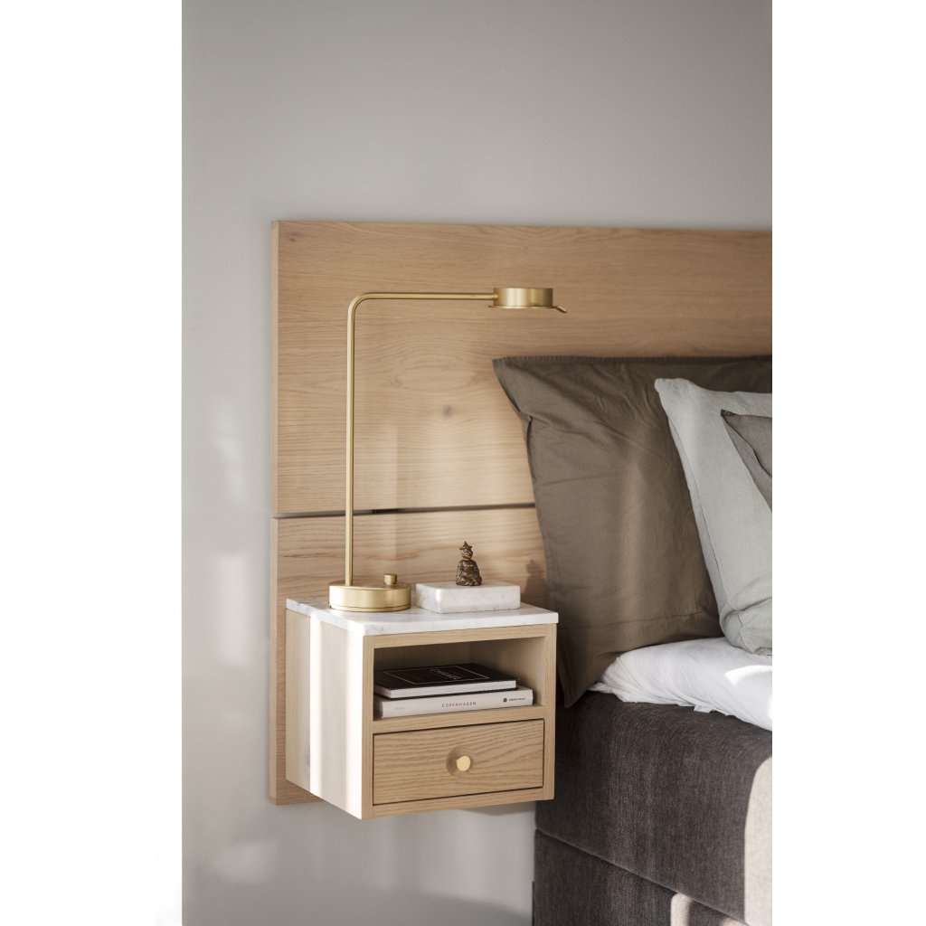 Nádherné postelové čelo se stolky WHITMORE od švédského výrobce krásného nábytku ROWICO. Čelo WHITMORE je krásná dubová dýha, která se skládá ze 2 částí, jejichž velikost lze pomocí kovový nohou měnit od 114 do 139 cm. Čela má 2 stolky s výsuvnými zásuvkami a porádními deskami z bílého mramoru. Velmi krásný a luxusní kousek jako MUST HAVE do každé ložnice.