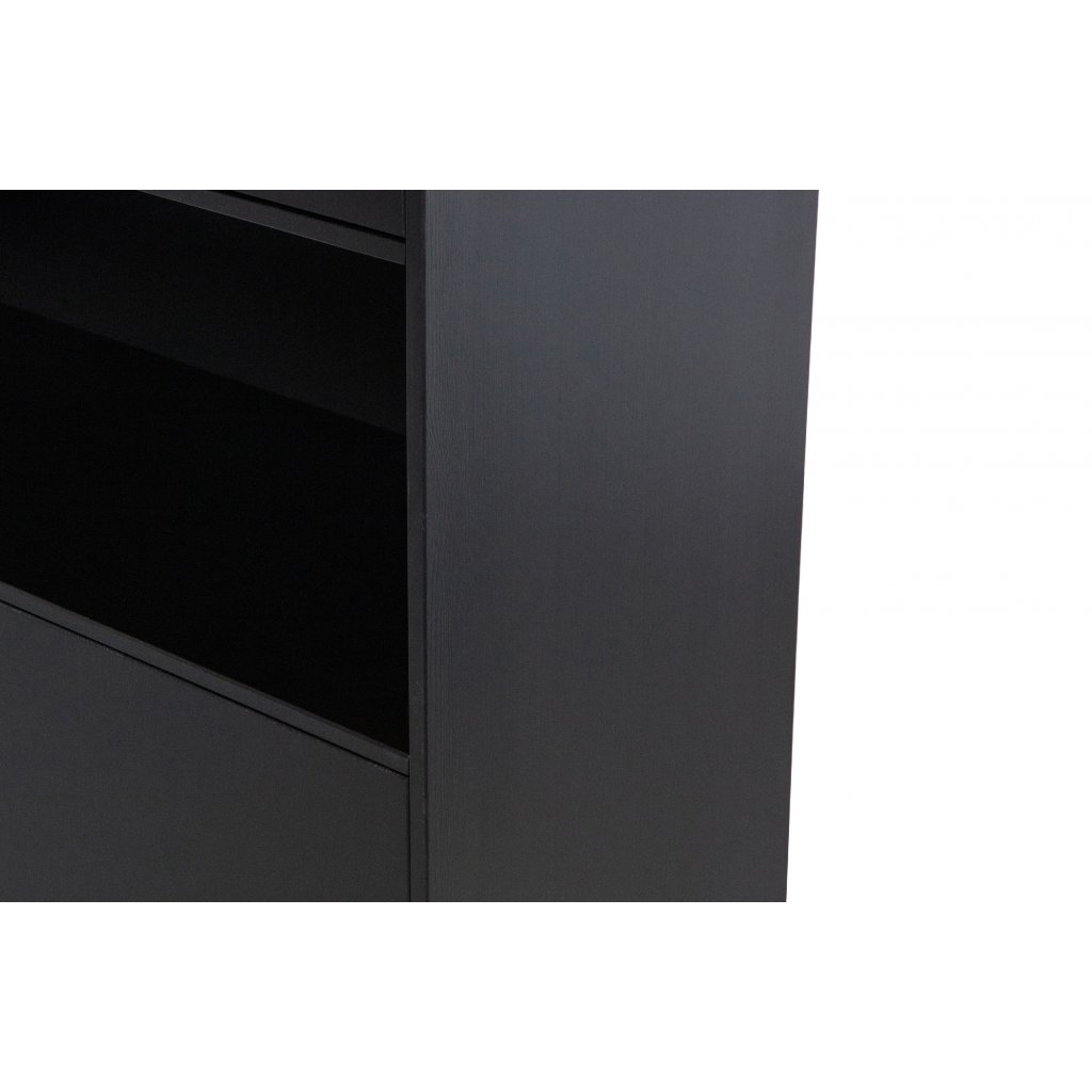 Dřevěná skříň FINCA slim od holandského výrobce krásného nábytku WOOOD. Tato úzká skříňka je vyrobena z masivní borovice a nalakována v elegantní černé barvě. I přes svou štíhlost nabídne 6 praktických přihrádek. 5 z nich je zakryto dvířky, se skvělým zavíracím systémem push-to-open (jen zatlačte a dvířka se otevřou, zavírání probíhá díky tomuto systému v naprosté tichosti). Jedna z poliček je otevřená - slouží k vystavení různých dekorací. Výhoda těchto pantů je, že na povrchu skříňky se nenacházejí, žádné úchyty. Dřevo série FINCA je opatřeno certifikátem FSC.