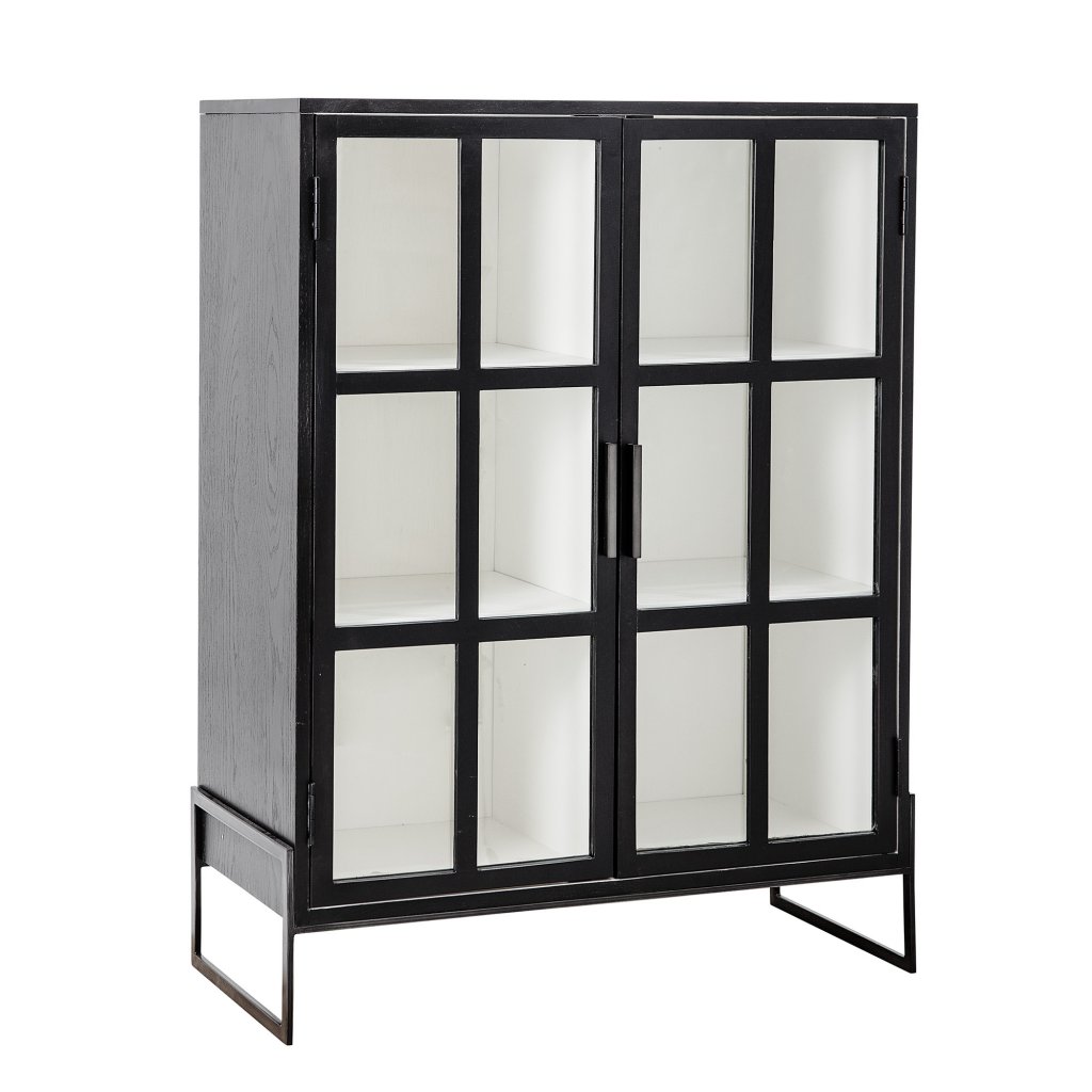 Designový kabinet OPAL od dánského výrobce nádherného nábytku BLOOMINGVILLE. OPAL je krásný kabinet vyrobený z dubového dřeva v černé barvě. Vnitřek je v bílé barvě. Dvířka jsou vyplněna skleněnými tabulemi a jsou doplněna o dvě kovové úchytky. Díky poličkám uvnitř je skříňka velmi praktická a tvoří 6 úložných prostor. Je to krásný a poctivě vyrobený kus nábytku, který si užijí nejen milovníci moderního nábytku.