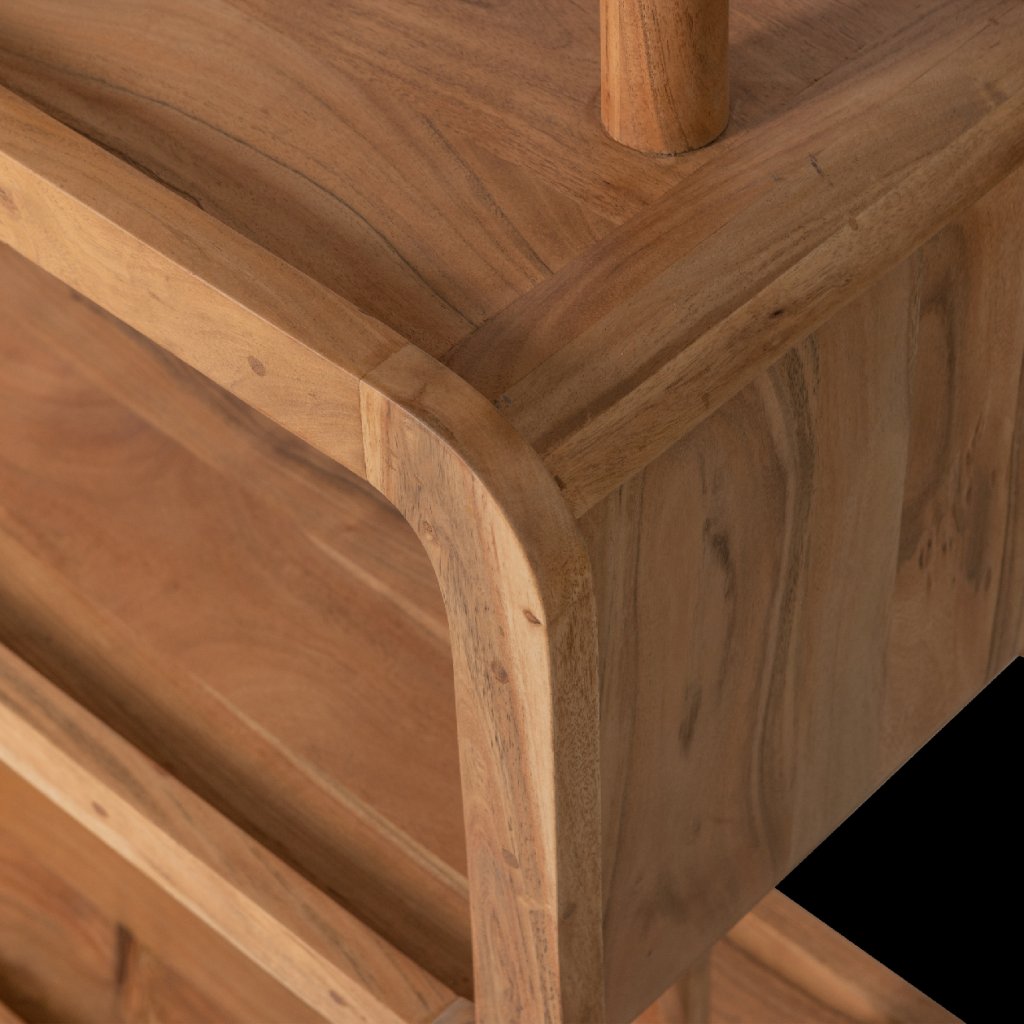 Designový dřevěný kabinet RATTLE od holandského výrobce kvalitního nábytku BePureHome. RATTLE je vyroben z velmi kvalitního akáciového dřeva. Komoda má krásný organický tvar a nabízí díky čtyřem otevřeným policím velké množství prostoru pro umístění Vašich dekorací či knih.