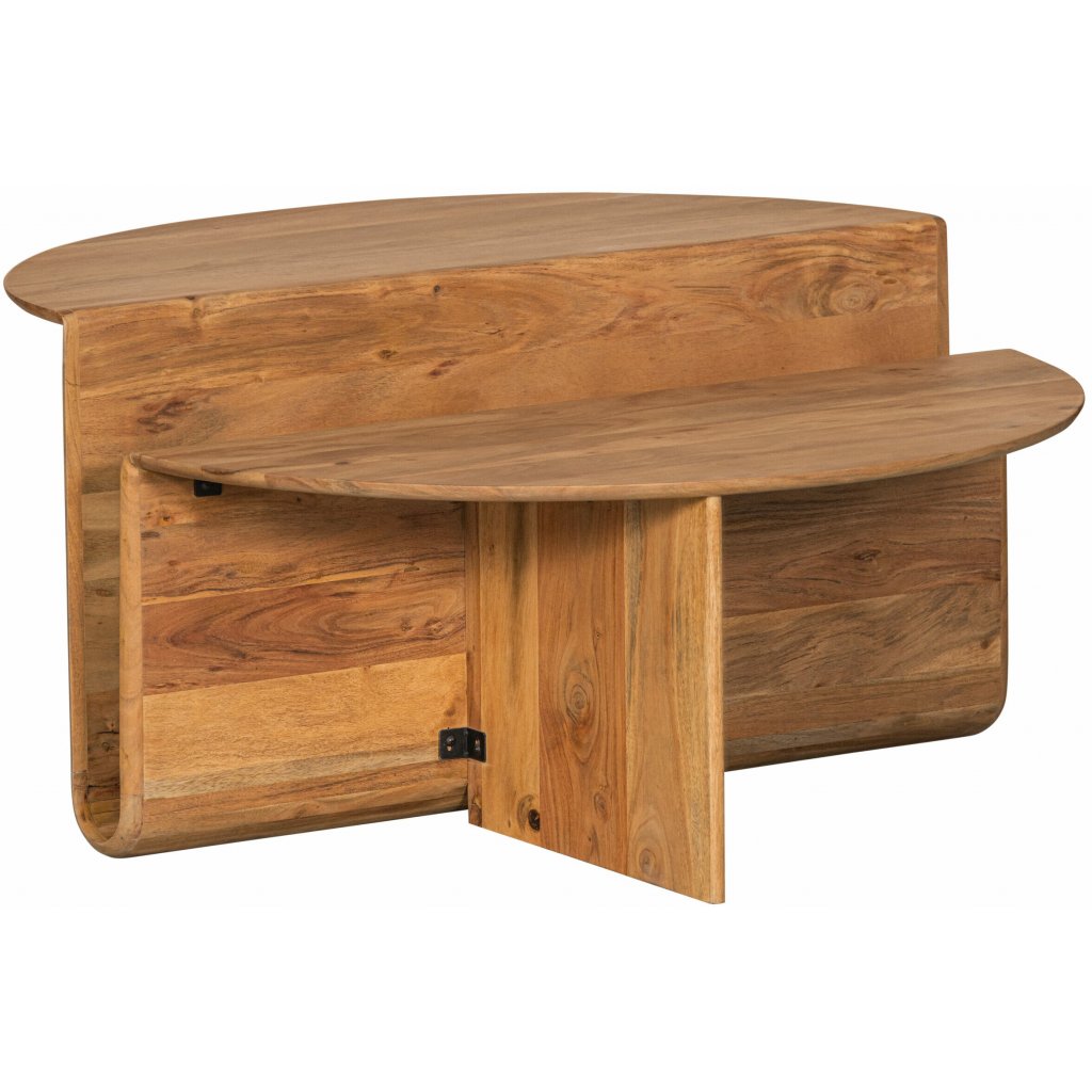 Designový konferenční stolek JAWS od holandského výrobce stylového nábytku BePureHome. Stolek je kompletně vyroben z ošetřeného akáciového dřeva. Díky laku a červenohnědému odstínu dřeva skvěle rozzáří Vaši místnost. Dvě stupňovité stolní desky nabízí spoustu místa pro Váš šálek kávy nebo květiny. Žlab mezi deskami je praktickým místem pro časopisy. Velmi zajímavý design skvěle zapadne do moderního interiéru.