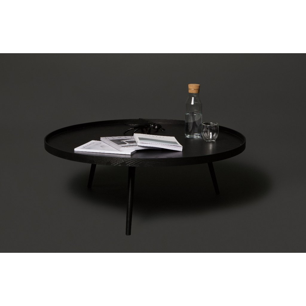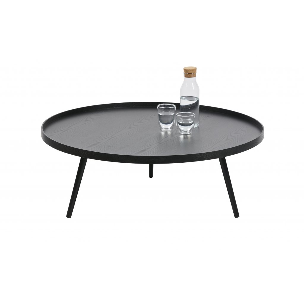 Designový konferenční stolek MESA XL od holandského nábytkového výrobce WOOOD. Krásný stolek s kulatou horní deskou z dřevovláknité mdf desky s dekorem tmavého dřeva, která vyvýšený okraj, aby vám nic nespadlo na zem. K desce s průměrem 100cm jsou připevněny 3 dřevěné nohy v černé barvě, které zajišťují potřebnou stabilitu stolku.
