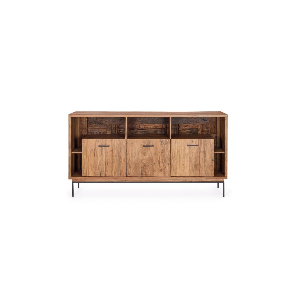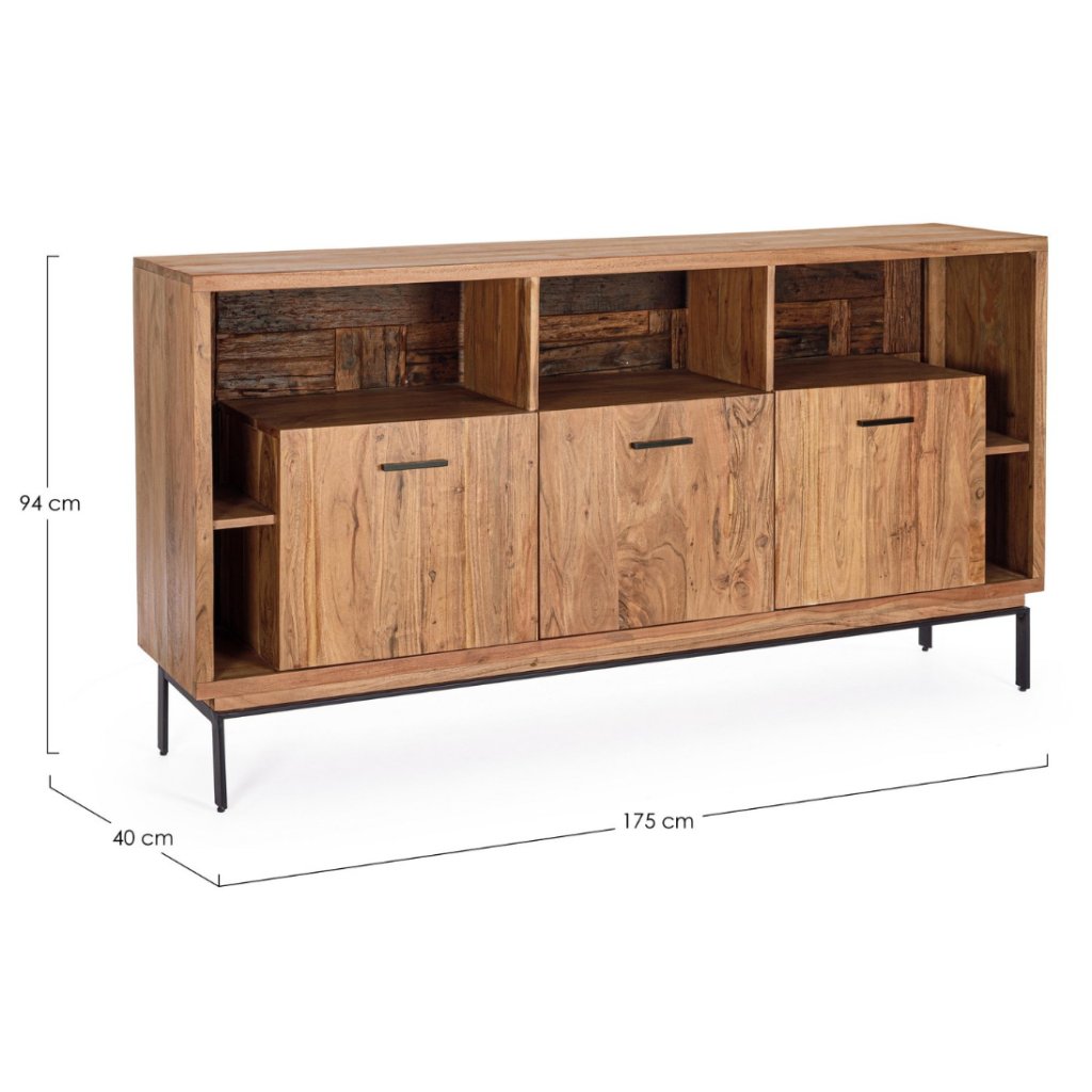 Designový dřevěný příborník MANGAL od italského výrobce stylového nábytku BIZZOTTO. Nohy tvoří konstrukce z černě lakované oceli, která zajišťuje maximální robustnost, stabilitu a nosnost. Kostra je ze dřeva akácie a její povrch je naolejován a zbarven do příjemného hnědého odstínu. Příborník má dostatek úložného prostoru v podobě tří přihrádek a polic. Dvířka mají kvalitní panty, díky kterým mají tichý a plynulý doraz. Velmi netradiční a nevšední příborník, který potěší nejen milovníky jedinečného nábytku.