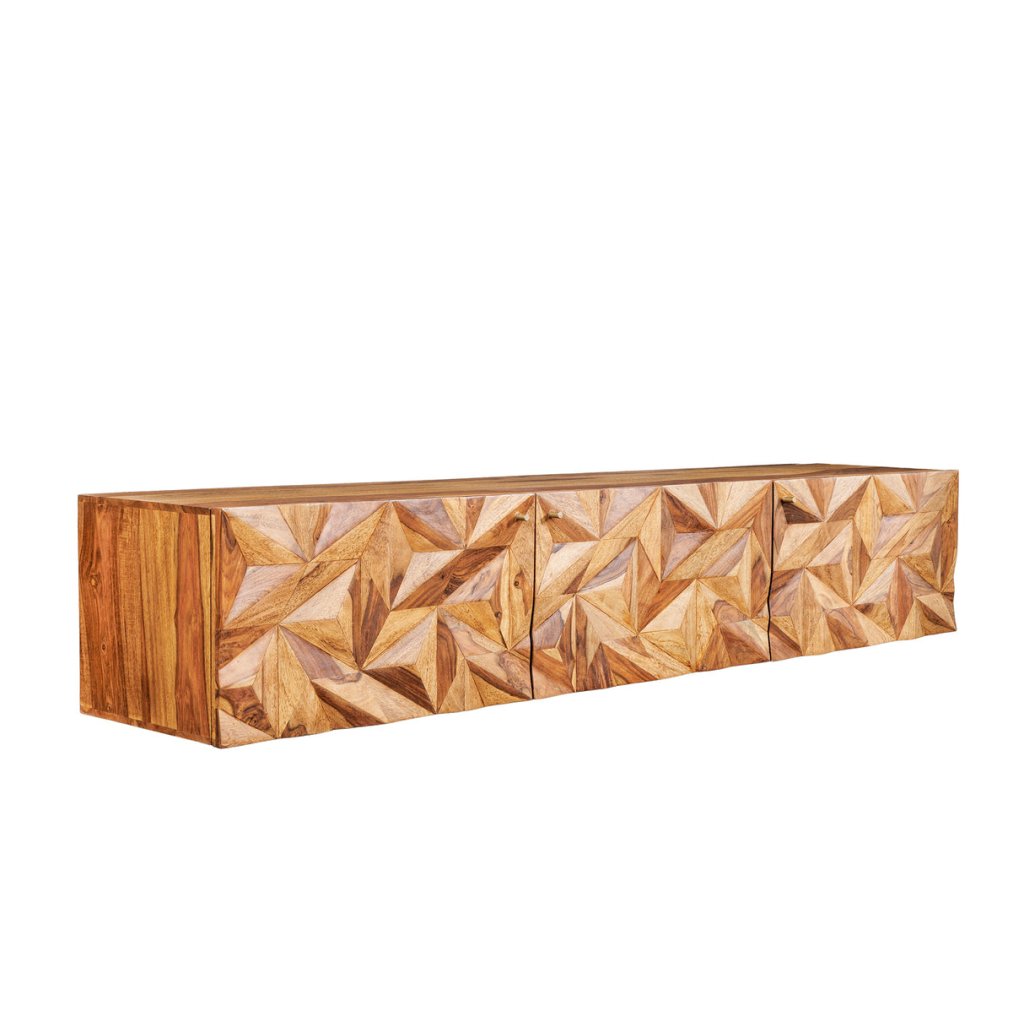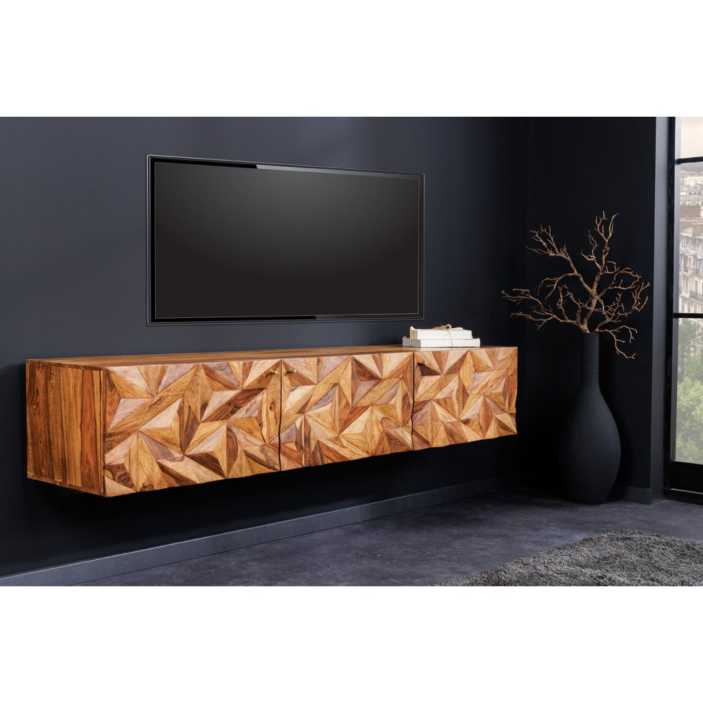 Designový TV stolek ALPINE od německé značky designového nábytku INVICTA. Stolek je opravdu nádherný výrobek z masivního dřeva exotického sheeshamu v medovém provedení. Na 3 předních dvířkách najdete jednotlivé geometrické znaky, které z něj dělají unikátní výrobek. Za 3 dvířky pak máte úložný prostor 3 polic na settopbox, konzole a jiné dekorace či dokumenty a techniku. Stolek nemá nohy a je tak určen POUZE na zavěšení na zeď či položení na podlahu.
