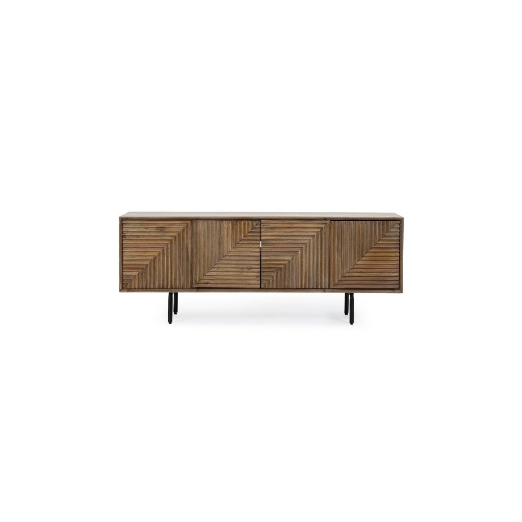Designový TV stolek DARSEY od italského výrobce stylového nábytku BIZZOTTO. TV stolek DARSEY je z masivního mangového dřeva v tmavě hnědé barvě. Na TV stolku DARSEY je ze přední strany krásný charakteristický vzor, který bezpochyby obzvláštní vaši domácnost. Skvělá stabilita je zde zajištěna 4 nohami z černě lakované oceli. Záda a vnitřek dvířek tvoří mdf deska. TV stolek je díky pevné konstrukci stabilní a robustní. Na přední straně jsou 4 otevíratelná dvířka, které vynikají krásnou mozaikou. Dvířka se otevírají stisknutím a drží na magnetu. TV stolek může být krásný i jako komoda do ložnice, záleží jen na vaši volbě.