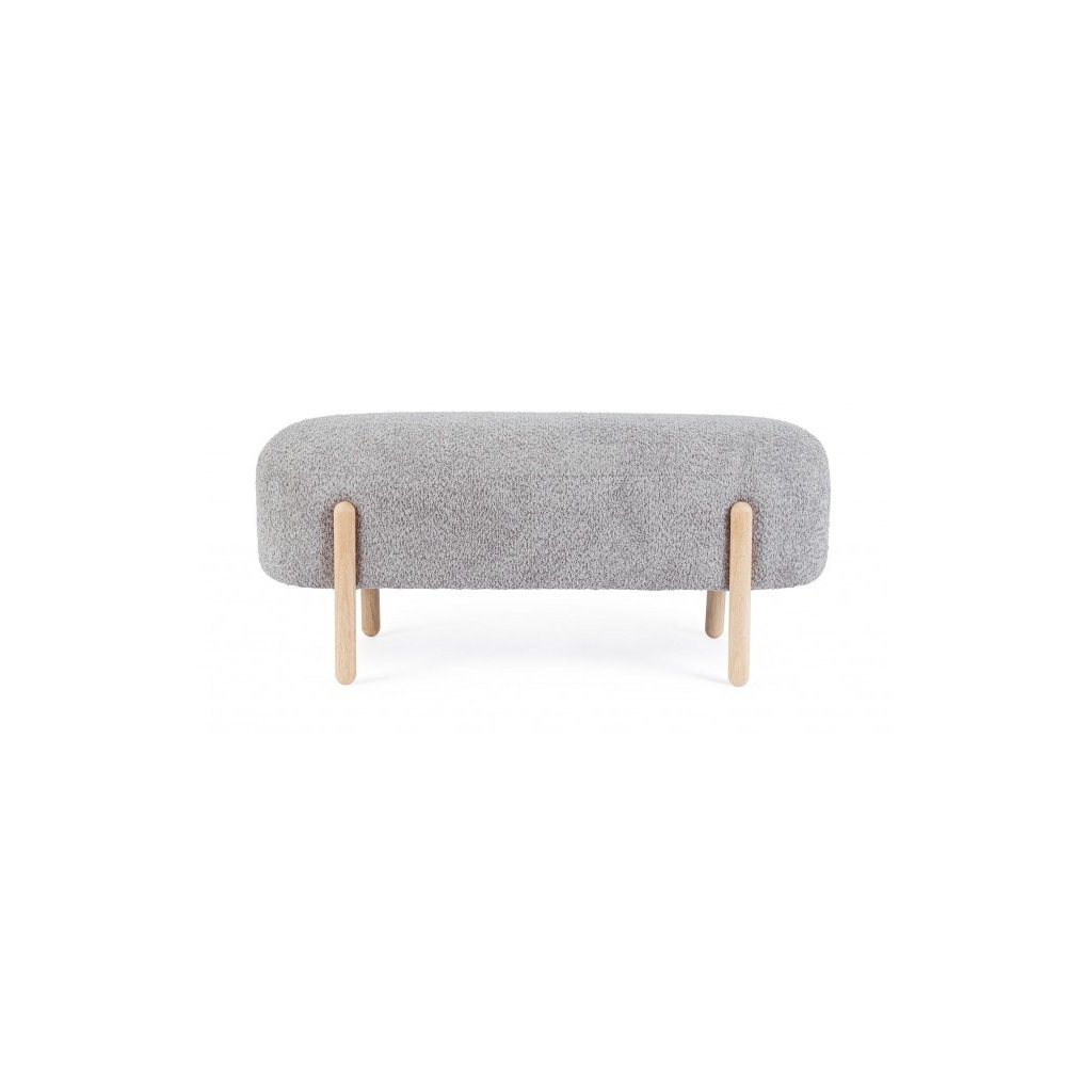 Stylová lavice DAYLA od italského výrobce stylového nábytku BIZZOTTO. DAYLA je dodávána se 4 dřevěnými nohami ve světlém provedení, což zajišťuje lavici potřebnou stabilitu a pevnost. Vrchní sedák s rozměry 108x41,5 cm je potažen potahem bouclé v moderní a stylové šedé barvě. K dostání i v dalších barevných variantách.