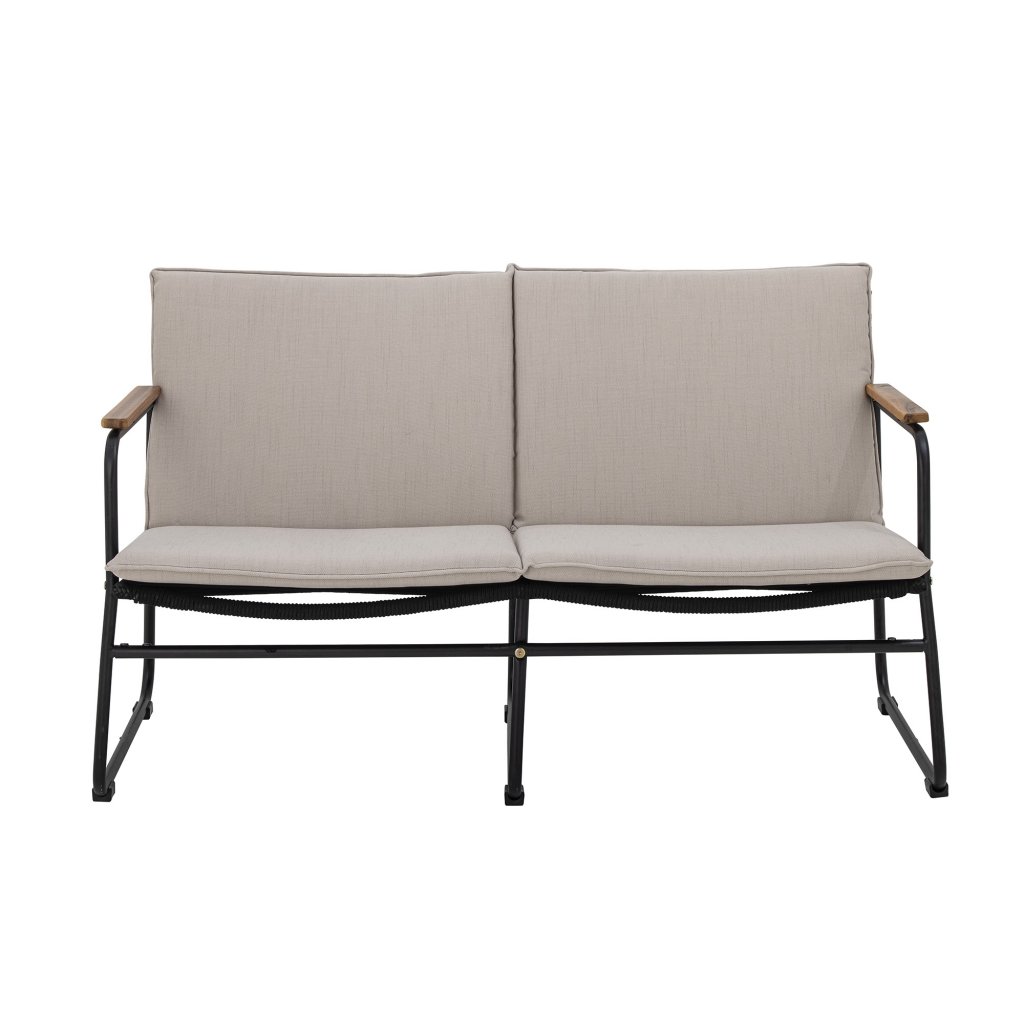 Designová pohovka HAMPTON od dánského výrobce nádherného nábytku BLOOMINGVILLE. Rám pohovky je vyroben z černého kovu, zatímco sedadlo a opěradlo jsou vyrobeny z pletené šňůry, která je velmi pohodlná. Pohovka má 6 kovových nohou v černém provedení, které jsou navzájem propojeny, což dodává pohovce maximální stabilitu a pevnost. Pohovka je vybavena dřevěnými opěrkami pro větší komfort.