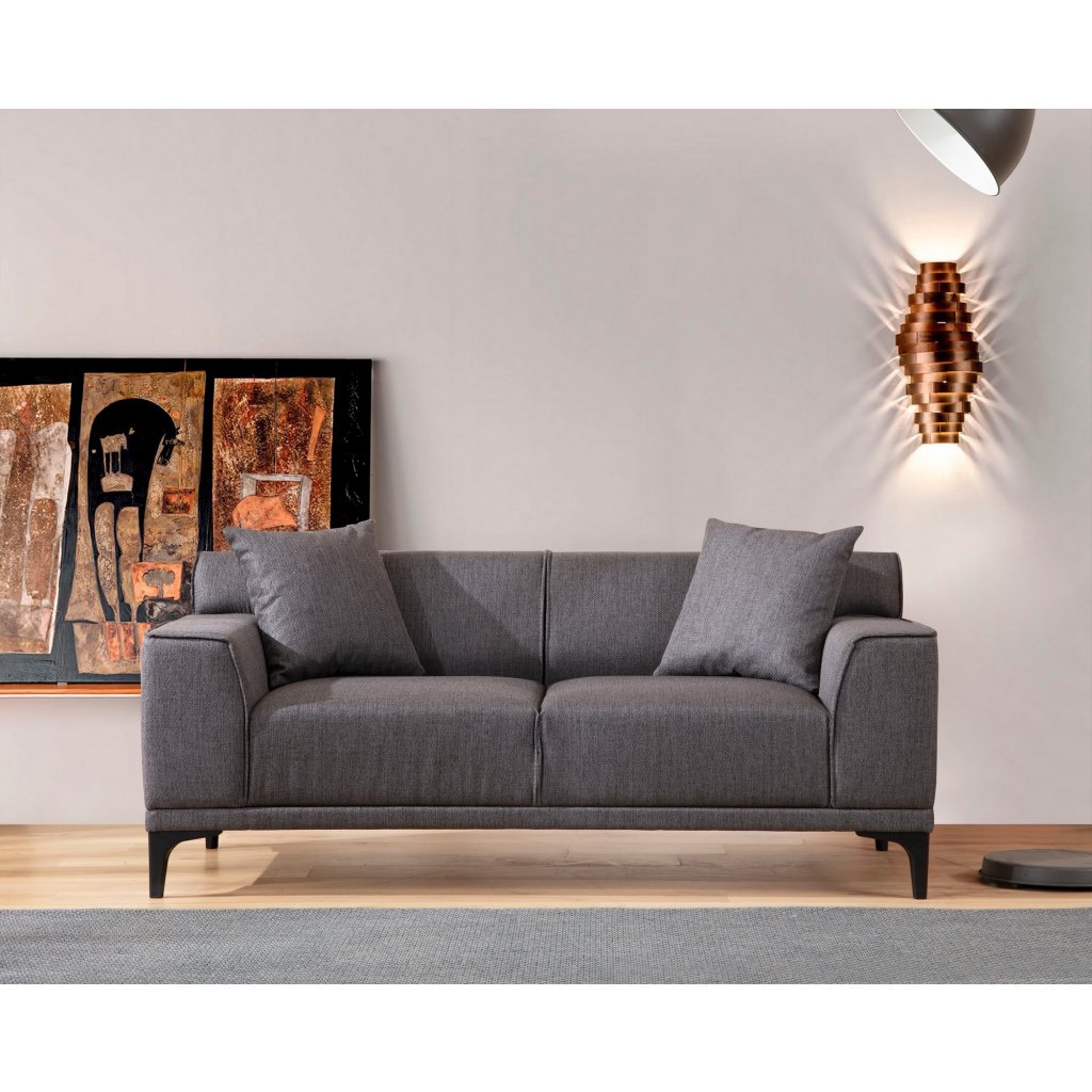 Designová pohovka PETRA od kvalitního výrobce nábytku a pohovek HANNAH HOME. Velice stylová pohovka vás rozhodně zaujme nejen kvalitním zpracováním, ale také svým minimalistickým designem. Pohovka je čalouněná látkou v šedém odstínu a výborně tak doplní moderně zařízené interiéry, do kterých vnese útulnou atmosféru. Šikovným doplňkem jsou i dva menší polštářky pro vaše pohodlí a komfort.