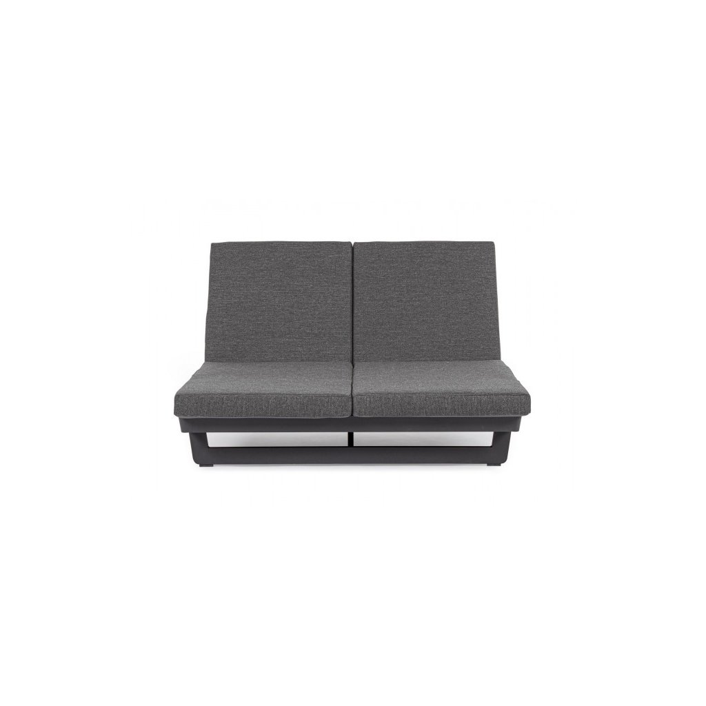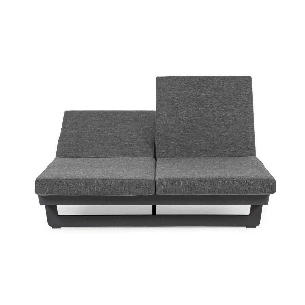 Designové dvoumístné polohovatelné venkovní lehátko INFINITY od italského výrobce stylového nábytku BIZZOTTO. Pevná konstrukce z antracitového práškovaného hliníku garantuje lehkost, pohodlnost a nadčasovost lehátka. Polohovatelná opěrka s pěti pozicemi se bude velmi hodit při opalování a čtení. Tmavý polštář z olefinové látky je odnímatelný a přizpůsobený k použití venku, jeho povlak můžete oddělit pro jednodušší praní. INFINITY má hliníková kola s pryžem, díky kterým bude manipulace s lehátkem velmi snadná. Poutavé lehátko v krásném tmavém provedení a s perfektním trendy designem.