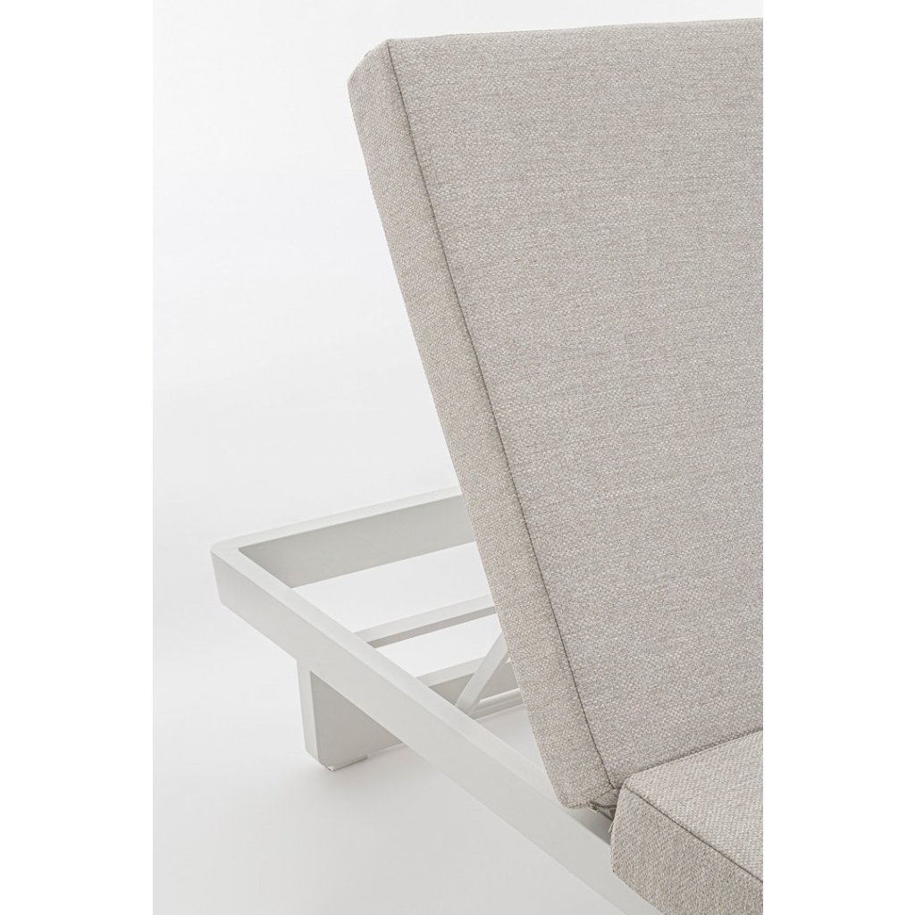 Designové dvoumístné polohovatelné venkovní lehátko INFINITY od italského výrobce stylového nábytku BIZZOTTO. Pevná konstrukce z bílého práškovaného hliníku garantuje lehkost, pohodlnost a nadčasovost lehátka. Polohovatelná opěrka s pěti pozicemi se bude velmi hodit při opalování a čtení. Béžový polštář z olefinové látky je odnímatelný a přizpůsobený k použití venku, jeho povlak můžete oddělit pro jednodušší praní. INFINITY má hliníková kola s pryžem, díky kterým bude manipulace s lehátkem velmi snadná. Poutavé lehátko v krásném světlém provedení a s perfektním trendy designem.