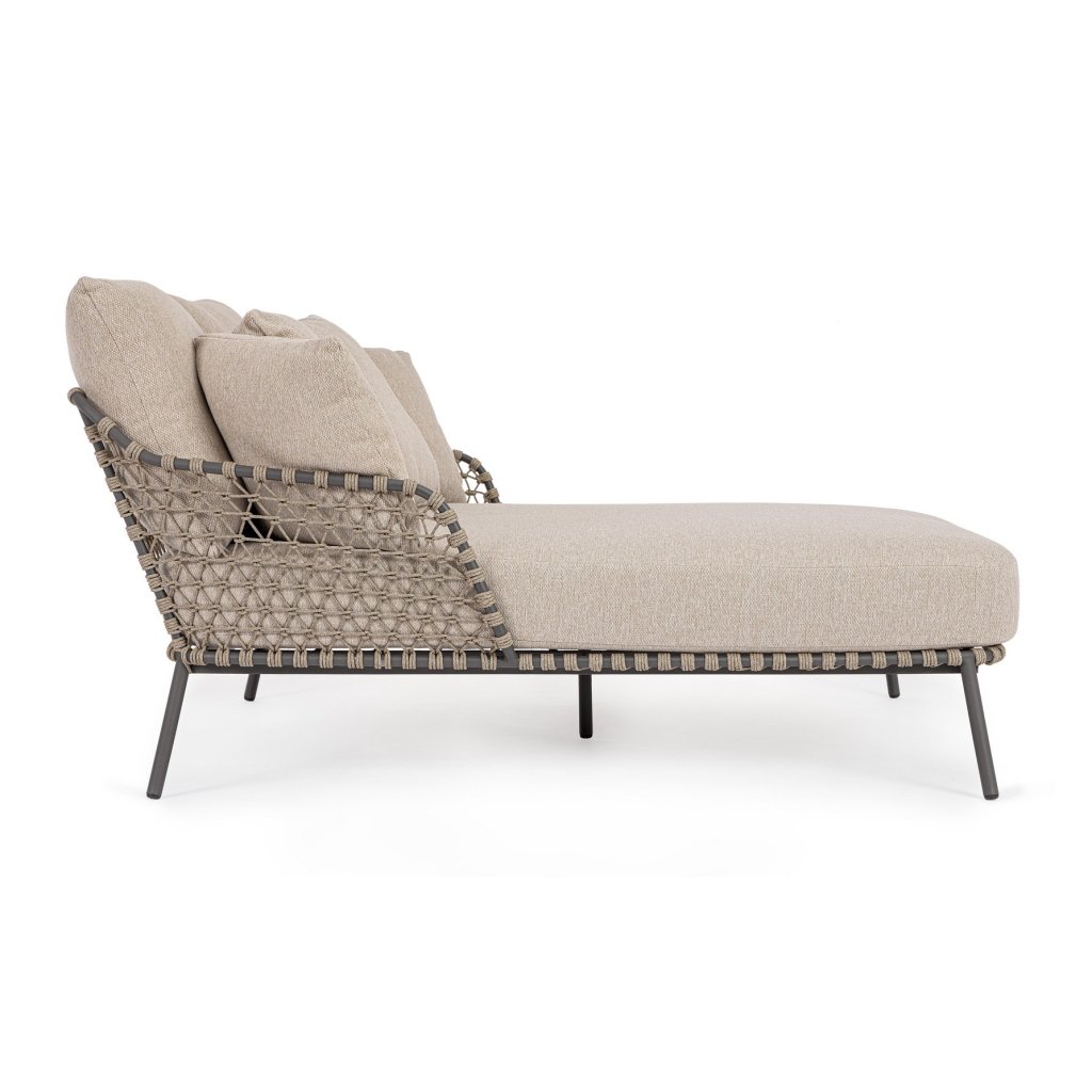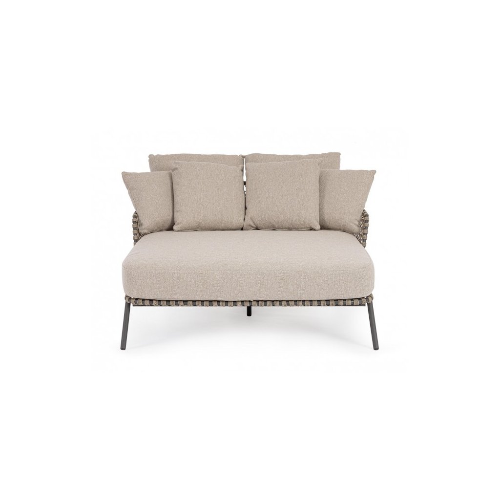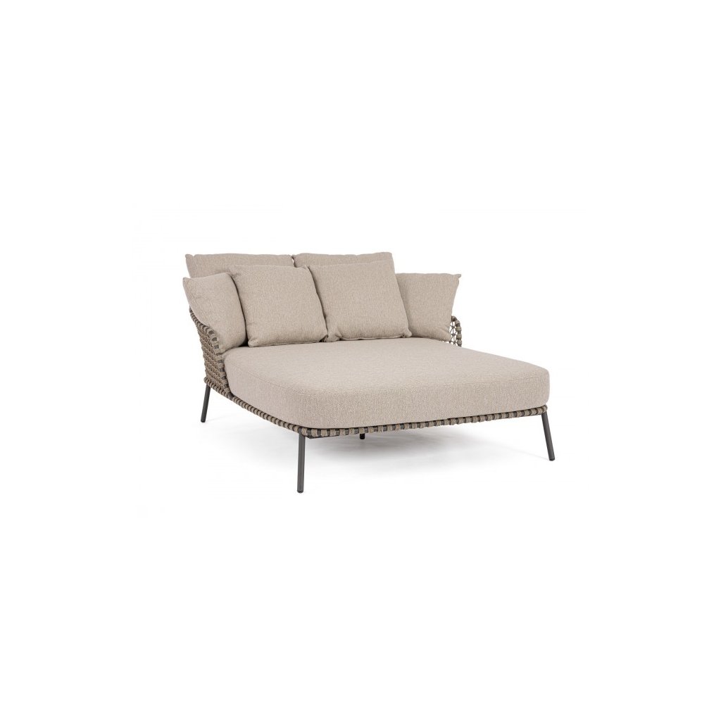 Designové nerezové lehátko pro dva IVISSA od italského výrobce stylového nábytku BIZZOTTO. Lehátko má nerezovou konstrukci, která je částečně potažena lanem z polypropylenu v béžové barvě. Lehátko, nebo také venkovní postel, má vyjímatelné polštáře z voděodolné olefinové látky. Nedoporučuje se vystavovat lehátko přímému slunečnímu záření a extrémním vlivům špatného počasí.