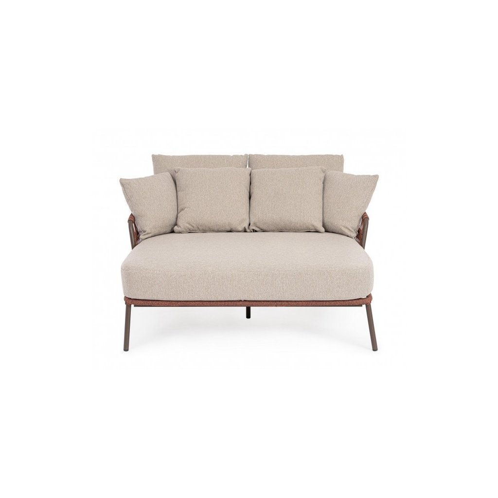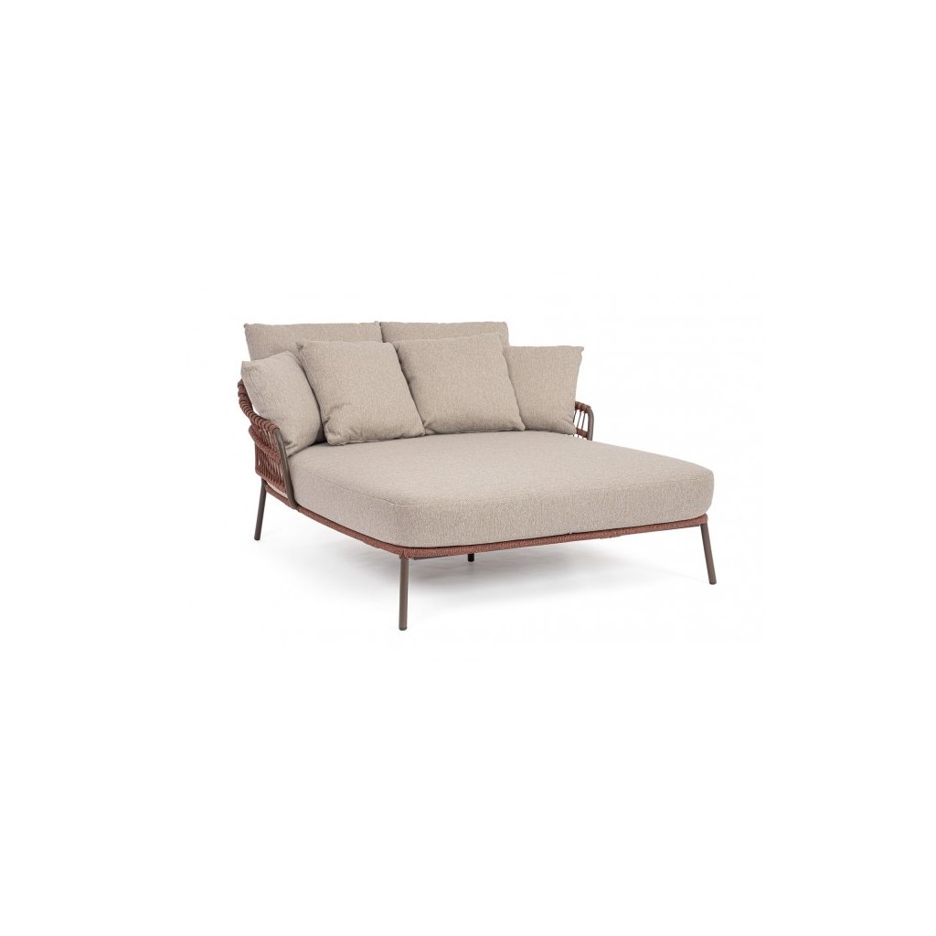 Designové nerezové lehátko pro dva TALAIA od italského výrobce stylového nábytku BIZZOTTO. Lehátko má nerezovou konstrukci, která je částečně potažena lanem z polypropylenu v hnědé barvě. Lehátko, nebo také venkovní postel, má vyjímatelné polštáře z voděodolné olefinové látky. Nedoporučuje se vystavovat lehátko přímému slunečnímu záření a extrémním vlivům špatného počasí.