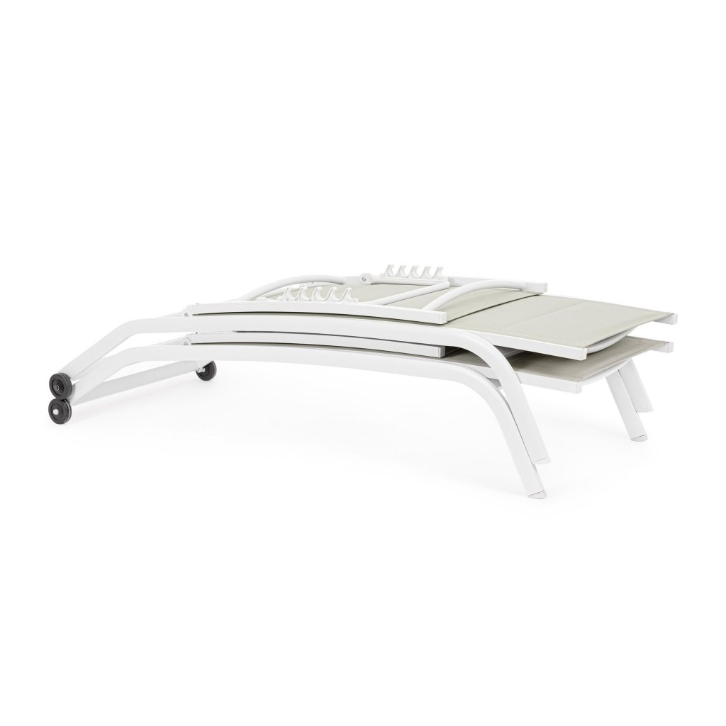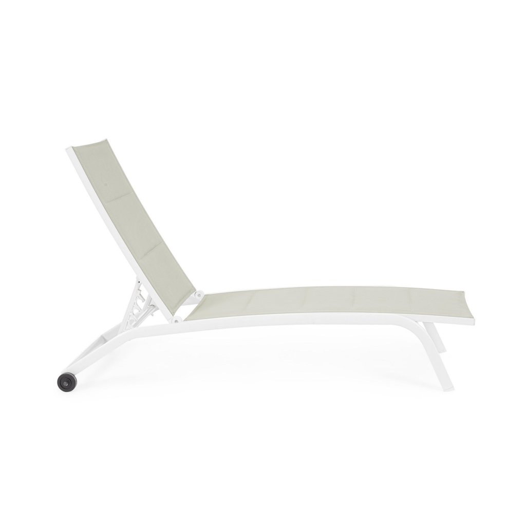 Designové venkovní lehátko CLEOPAS od italského výrobce stylového nábytku BIZZOTTO v provedení bílého práškového hliníku a syntetického vlákna.