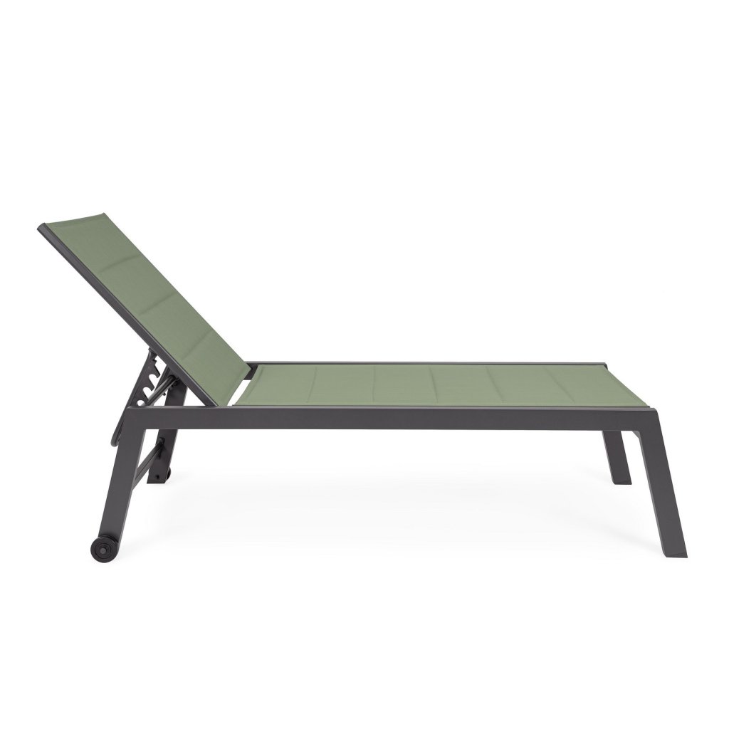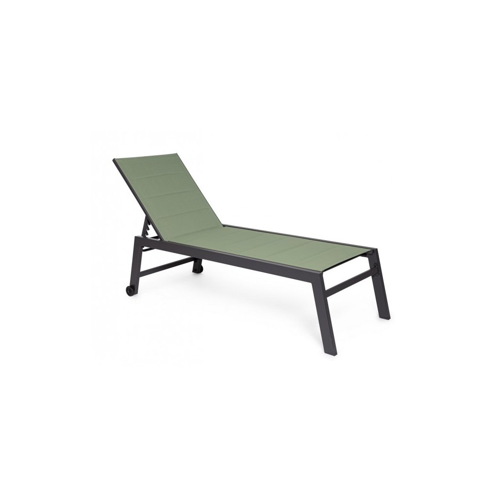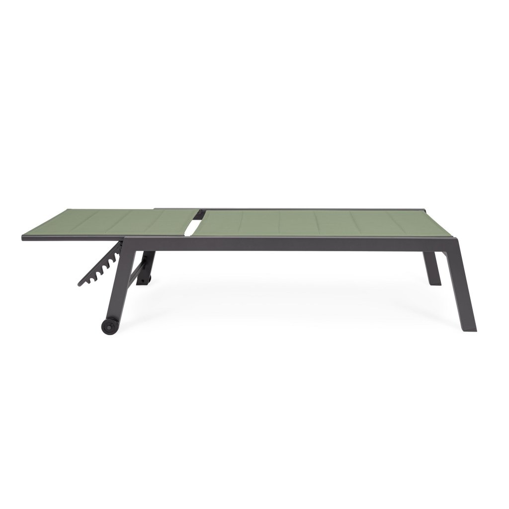 Designové venkovní lehátko HILDE od italského výrobce stylového nábytku BIZZOTTO v provedení antracitově lakovaného hliníku a zeleného sedáku.
