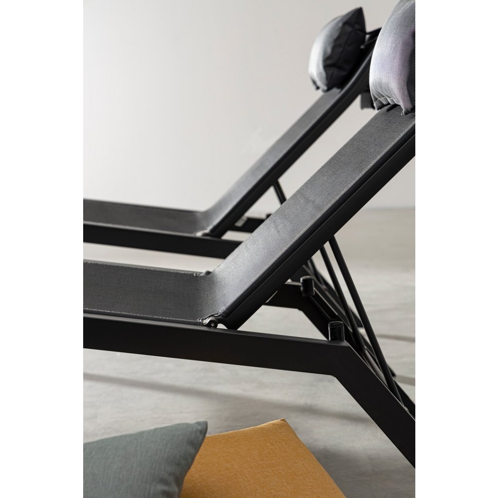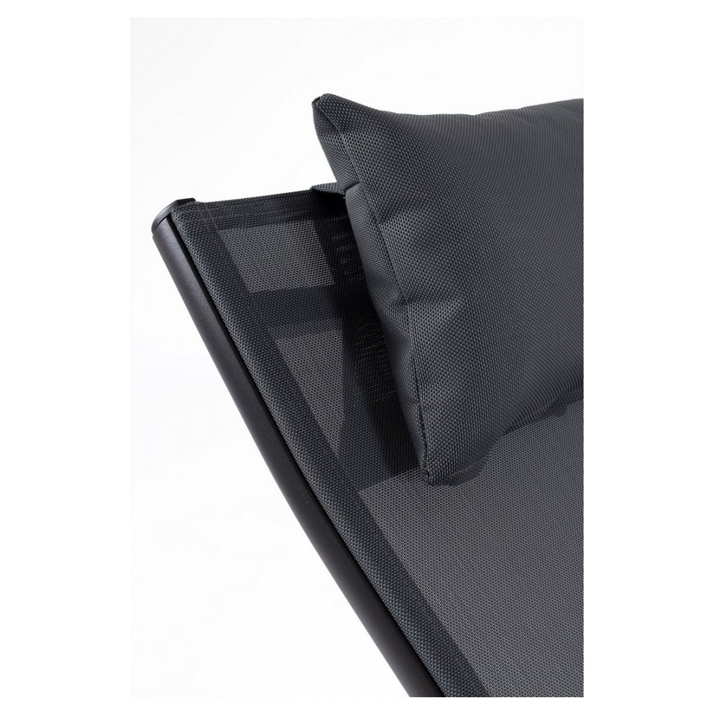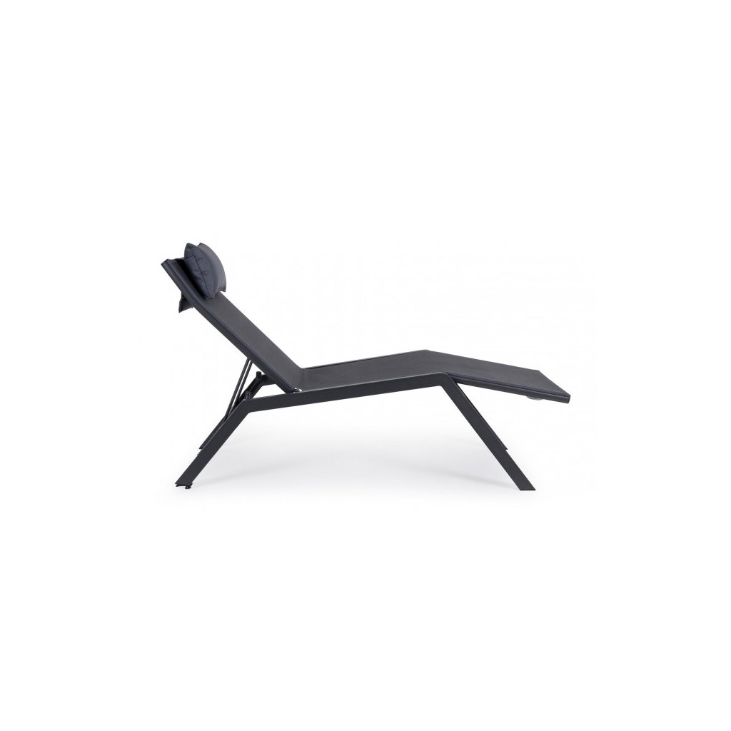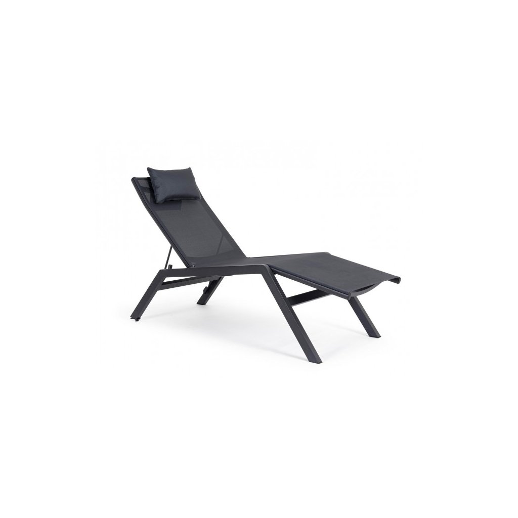 Designové venkovní lehátko KRION od italského výrobce stylového nábytku BIZZOTTO v provedení antracitové konstrukce z hliníku a šedého syntetického vlákna.