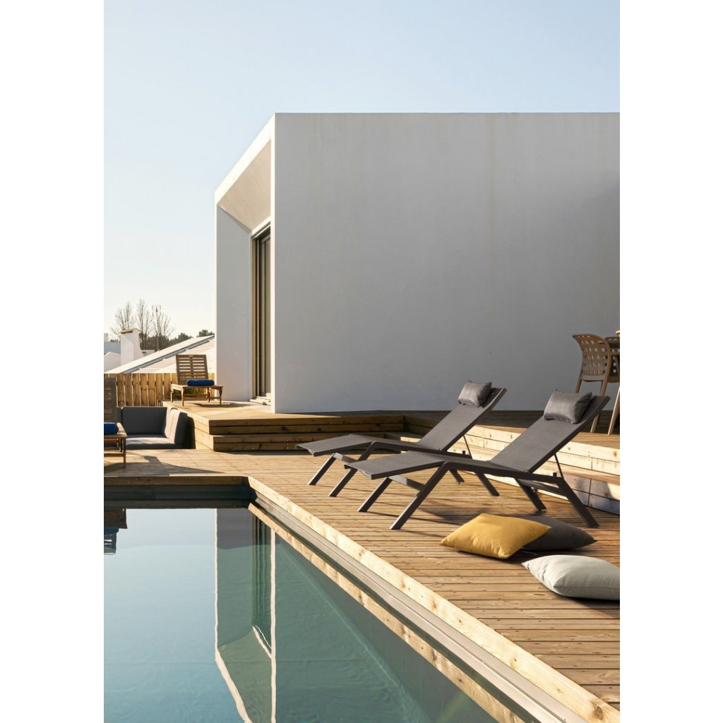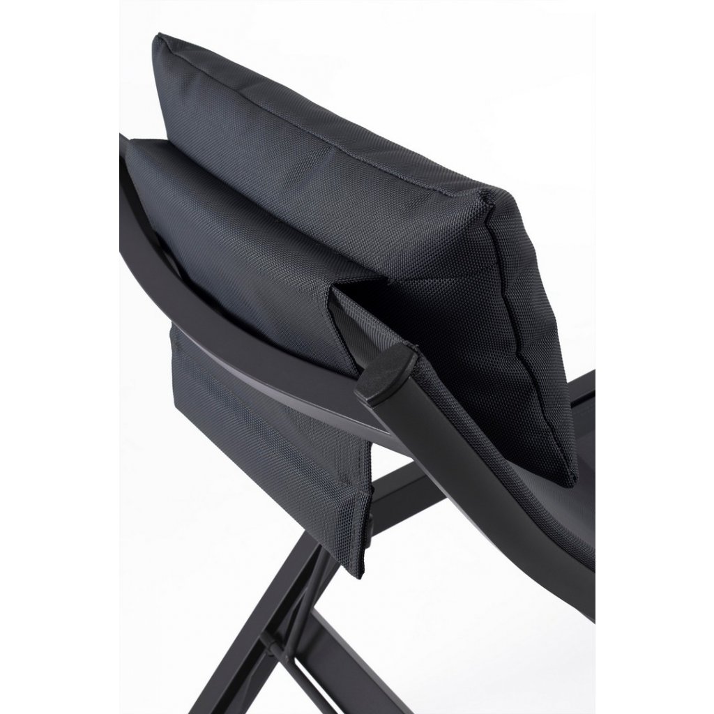 Designové polohovatelné venkovní lehátko KRION od italského výrobce stylového nábytku BIZZOTTO. Pevná konstrukce z práškovaného hliníku a syntetického vlákna garantuje lehkost, pohodlnost a nadčasovost lehátka. Polohovatelná opěrka, až do 3 pozic, se bude velmi hodit při opalování a čtení. Polštář je odnímatelný a přizpůsobený k použití venku, jeho povlak můžete oddělit pro jednodušší praní a je vyplněn rychleschnoucí pěnou. Poutavé práškované hliníkové lehátko v krásném antracitovém odstínu s perfektním trendy designem. Vše drží pohromadě ocelové šrouby.