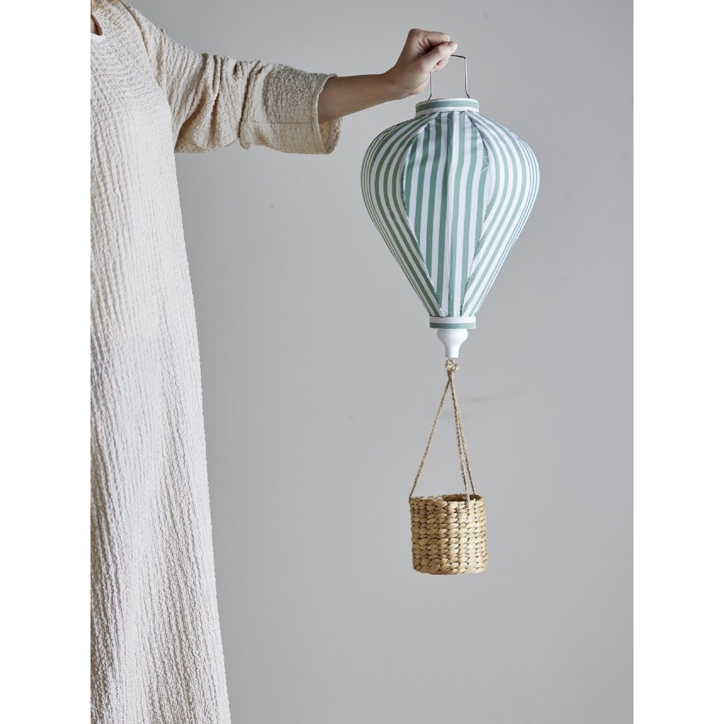 Dekorativní horkovzdušný balon POMP MOBILE od dánského výrobce nádherného nábytku BLOOMINGVILLE. Dekorace je vyrobena z polyesterové tkaniny s proužky v bílé a zelené barvě. Košík je vyroben z proutí, které dodá dětskému pokoji teplo. K balonu můžete také přidat malé světýlko na baterie. POMP MOBILE tedy může fungovat i jako malá lampička.
