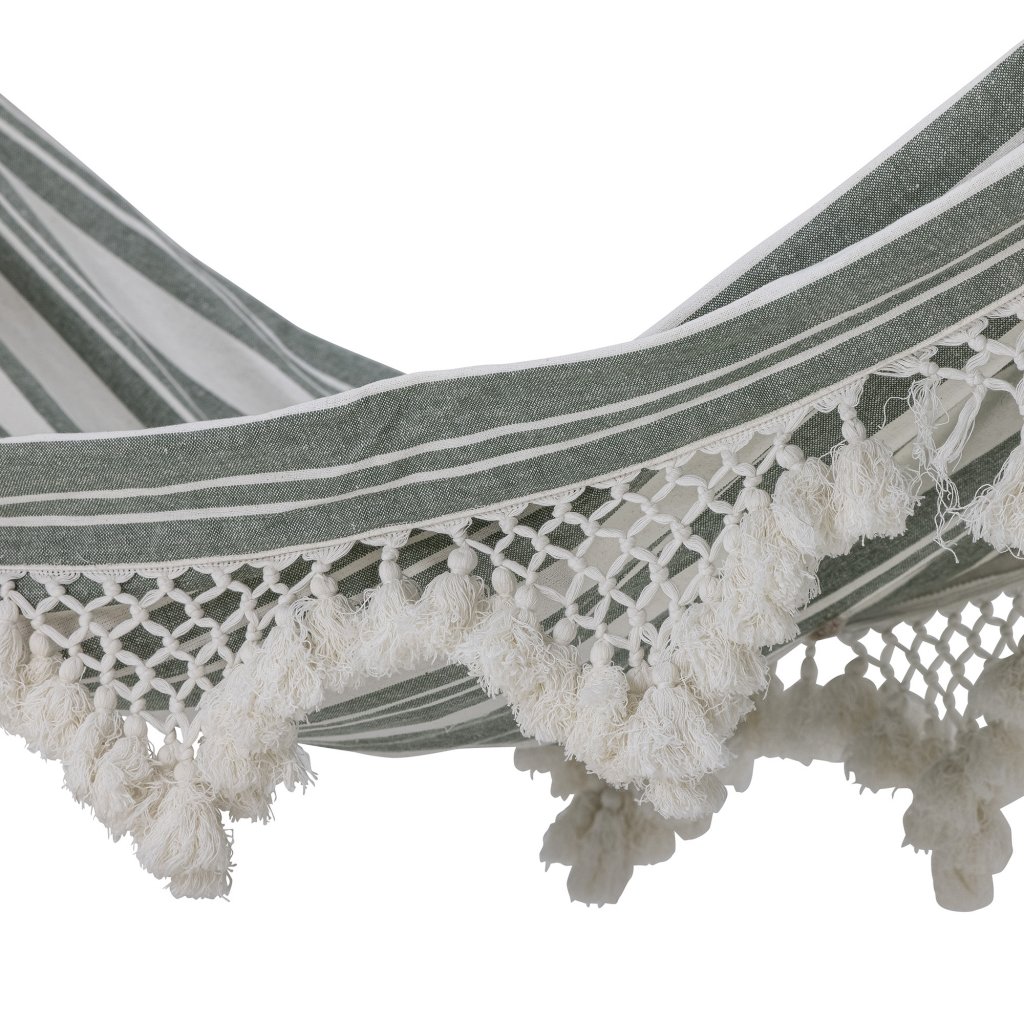 Houpací síť CRUZ od dánské značky nádherného nábytku BLOOMINGVILLE. Houpací síť je kompletně vyrobena z bavlny. Na obou stranách má síť pevné úchyty, díky kterým síť bude pevná a stabilní. Je velice pohodlná a příjemná na dotyk. Krásná a jednoduchá houpací síť, se kterou si na zahradě či kdekoliv jinde užijete spoustu legrace.