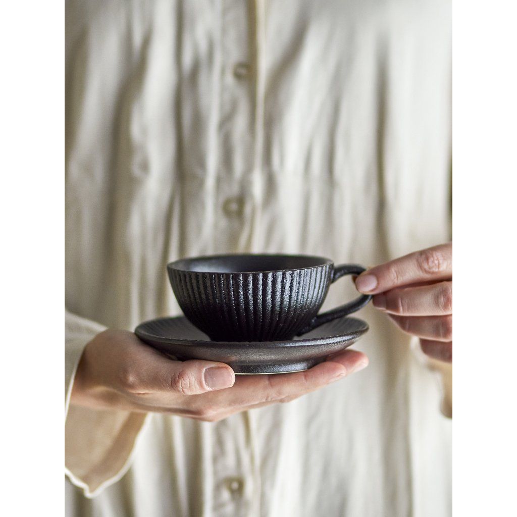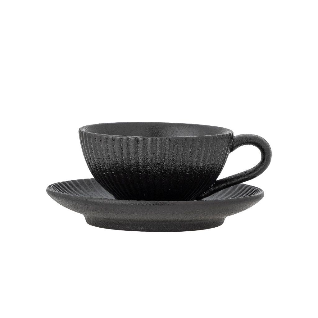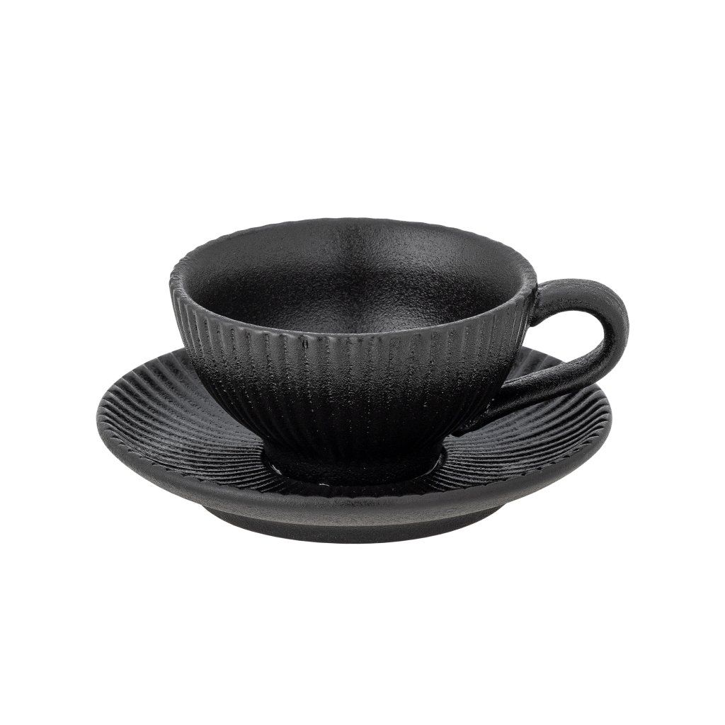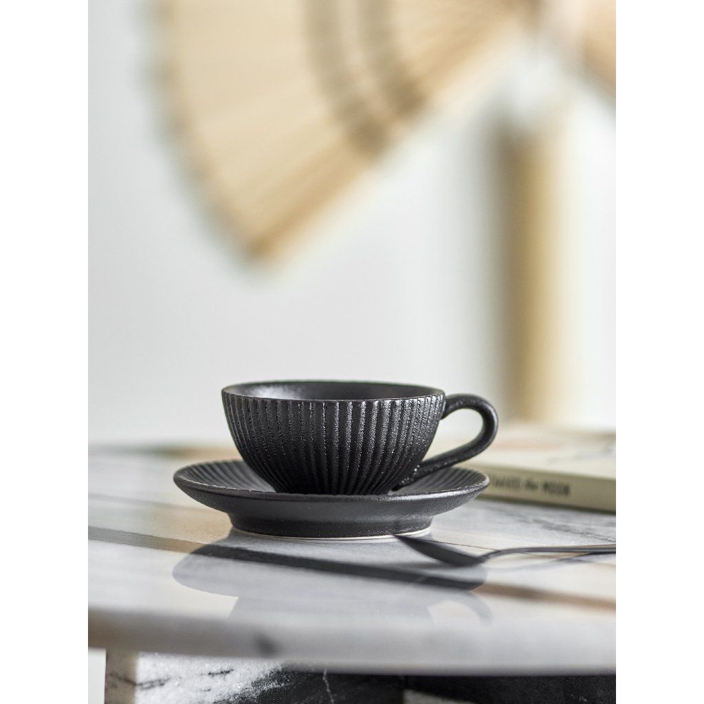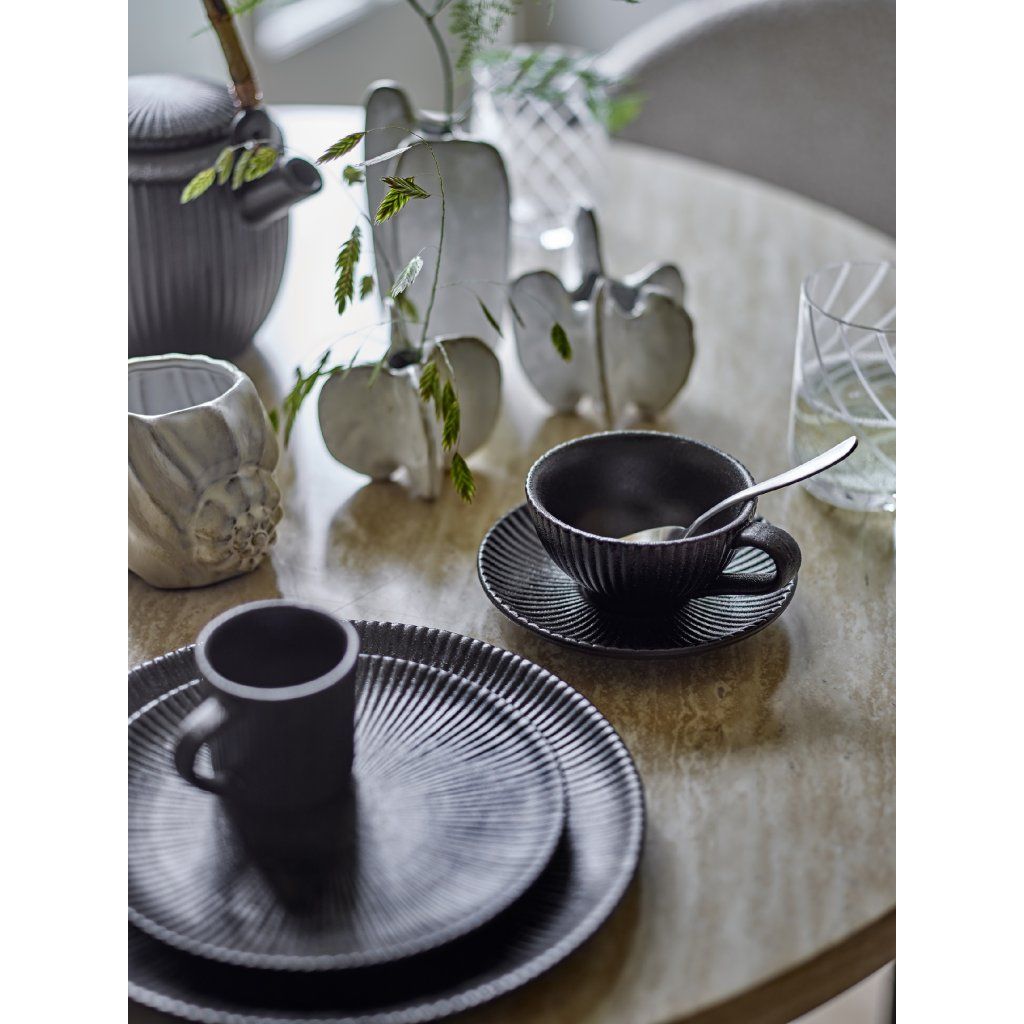 Stylový a krásný hrnek s podšálkem NERI dánské značky nádherného nábytku BLOOMINGVILLE. Sada s podšálkem představuje elegantní spojení jednoduchého designu a sofistikovaného detailu. Je vyrobena ze 100% kameniny a zaujme svým jemně žebrovaným povrchem a mírně zaoblenými tvary, které působí moderně a zároveň nadčasově. Tmavý odstín šálku je zvýrazněn třpytivou glazurou, která dodává celku hloubku a jemný lesk. Díky tomu působí sada velmi kultivovaně a snadno pozvedne každodenní chvíle u kávy na malý rituál. Objem 200 ml je ideální pro cappuccino nebo jiné oblíbené kávové nápoje. Sada není vhodná do mikrovlnné trouby ani trouby.
