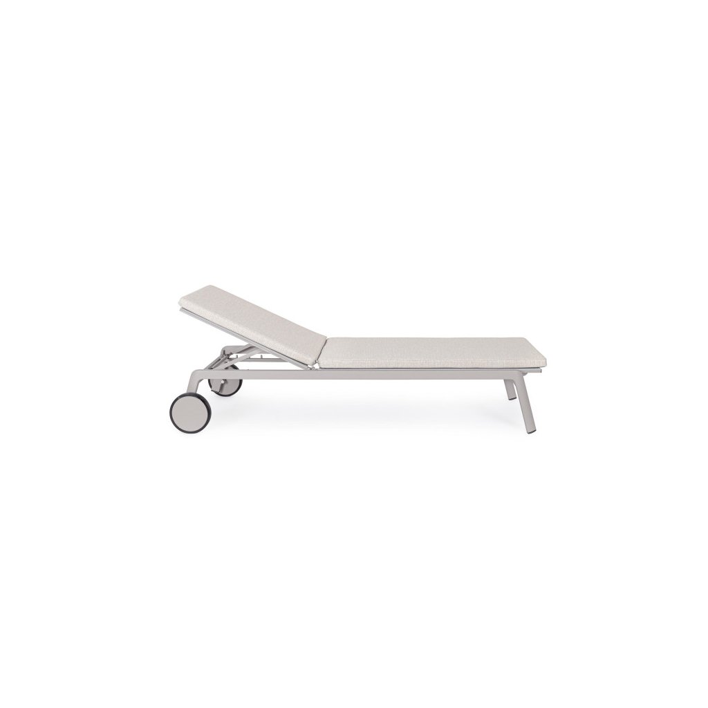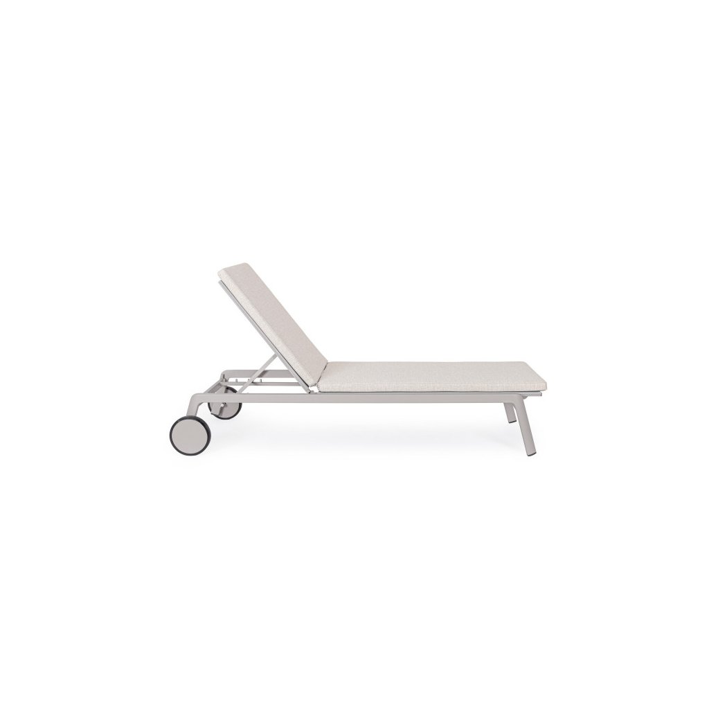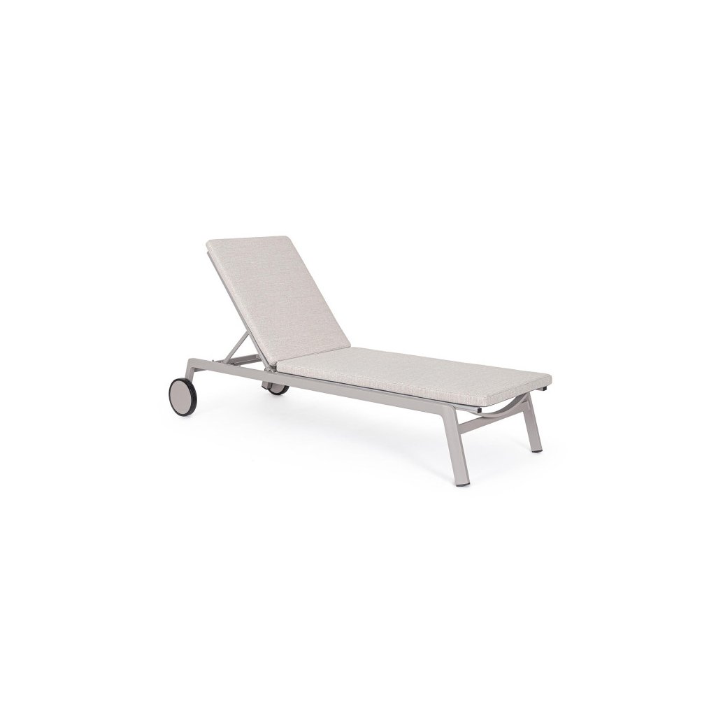 Designové polohovatelné venkovní lehátko JALISCO od italského výrobce stylového nábytku BIZZOTTO. Pevná konstrukce ze světle šedého práškovaného hliníku garantuje lehkost, pohodlnost a nadčasovost lehátka. Polohovatelná opěrka se čtyřmi pozicemi se bude velmi hodit při opalování a čtení. Šedé polštáře z akrylové látky jsou odnímatelné a přizpůsobené k použití venku, jeho povlak můžete oddělit pro jednodušší praní. JALISCO má hliníková kola s pryžem, díky kterým bude manipulace s lehátkem velmi snadná. Poutavé lehátko v krásném světlém provedení a s perfektním trendy designem.