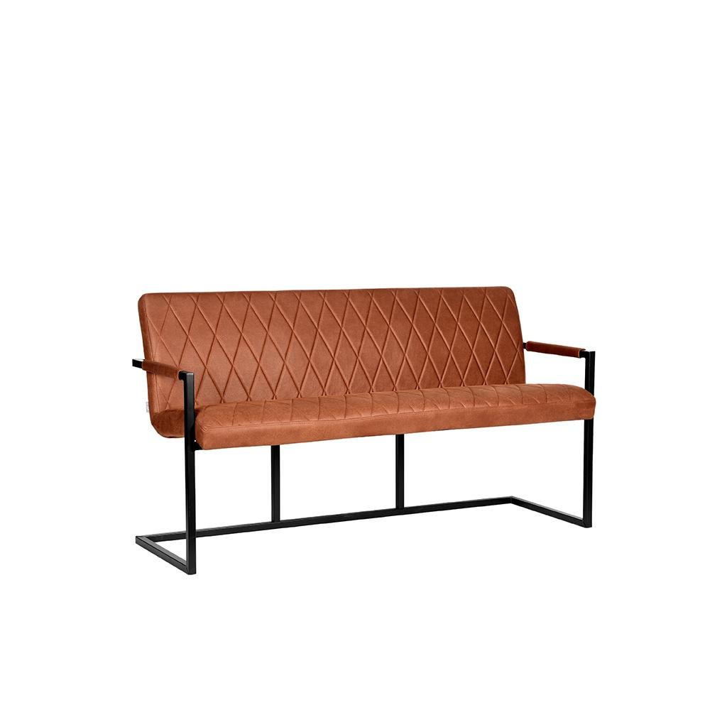 Jídelní lavice DENMARK od holandského výrobce industriálního nábytku LABEL51. Lavice DENMARK je robustní a pohodlné posezení, které upoutá pozornost ve vašem interiéru. Sedák z mikrovlákna má prošívané opěradlo a je v krásné barvě koňaku. Svým tvarem vás zaujme černá kovová, konzolovitá konstrukce, která zaručí maximální stabilitu, nosnost a pevnost.