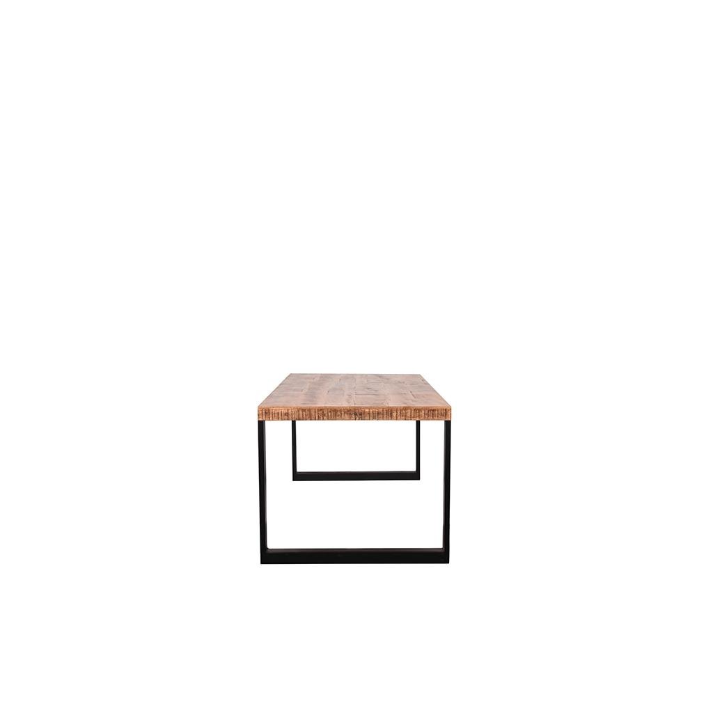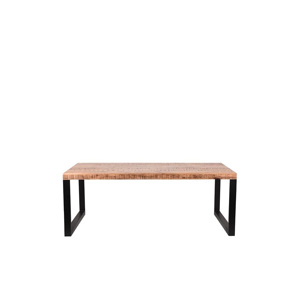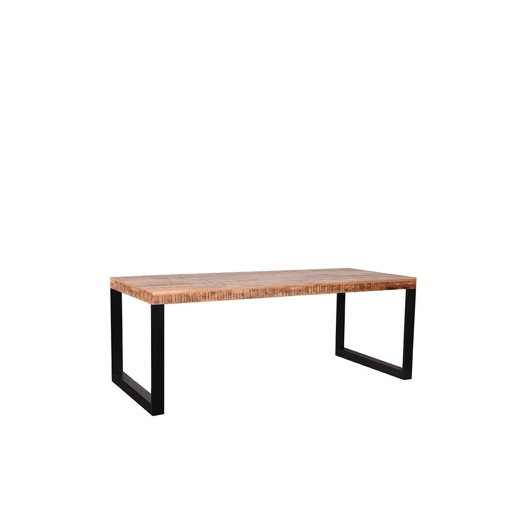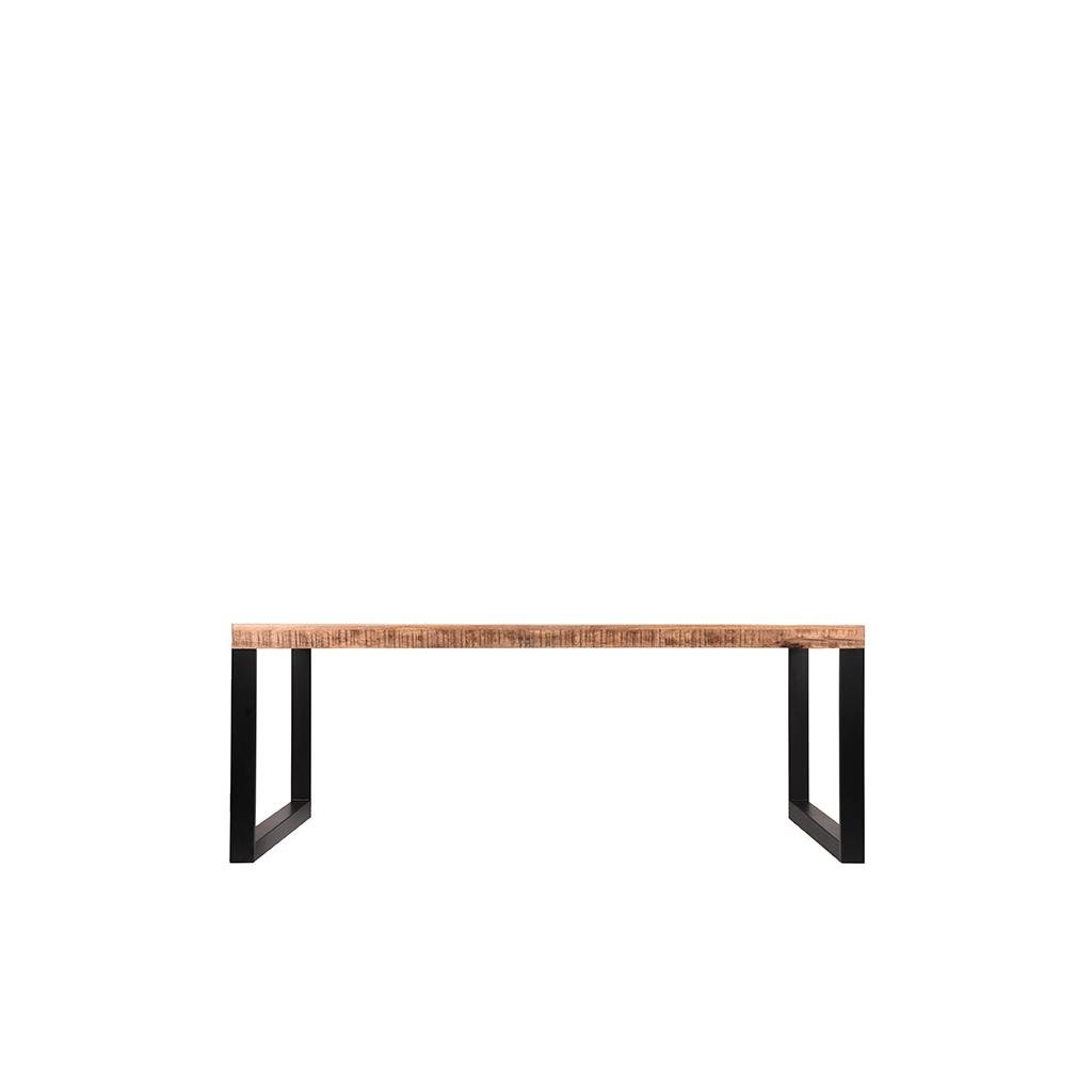 Jídelní stůl GLASGOW od holandské značky industriálního nábytku LABEL51. Stůl tvoří masivní jídelní deska z robustního mangového dřeva s rozměry 220x95 cm v hnědé barvě. K desce jsou připevněny 2 masivní kovové nohy v tvaru U z černě lakovaného kovu. To dodává stolu maximální nosnost a stabilitu. Tato kombinace nohou a mangového dřeva dodává stolu odvážný a průmyslový vzhled. Vzhledem k fascinující struktuře mangového dřeva, v barvách od tmavých tónů po světle hnědé, má tento stůl zajímavý vzhled a opravdu přidá na atmosféře v místnosti!
