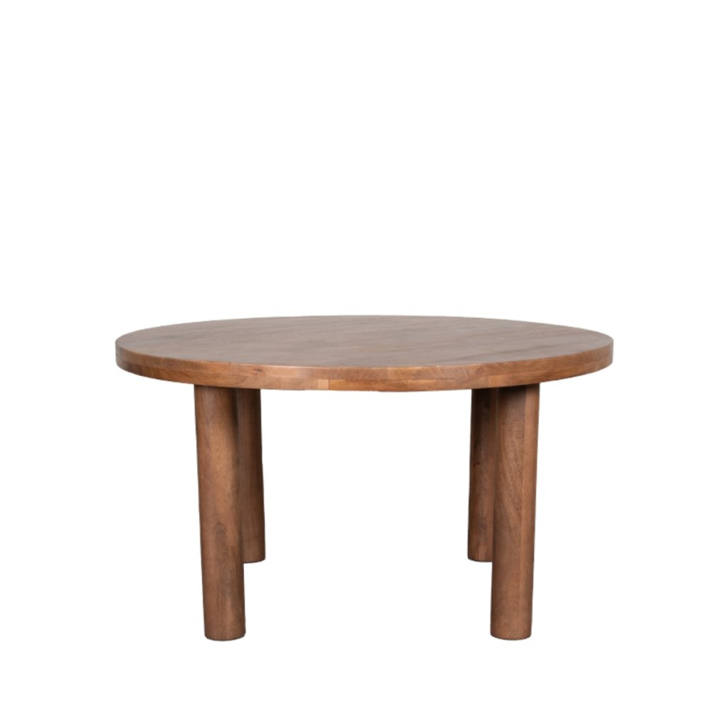 Designový jídelní stůl ELLY od holandského výrobce kvalitního nábytku LABEL 51. Stůl OLLY je celý vyrobený z mangového dřeva v hnědém provedení. Stůl je tvořen kulatou deskou s průměrem 140 cm a čtyřmi mohutnými nohami, které stolu zajišťují pevnost a stabilitu. ELLY je perfektní stůl, který lehce zakomponujete do vašeho interiéru.