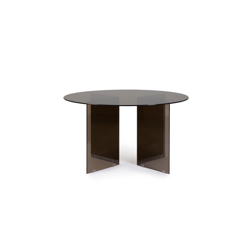 Designový jídelní stůl IRIDE od italské firmy stylového nábytku BIZZOTTO. Deska stolu má kruhový tvar o průměru 130cm a je tvořena z tvrzeného skla v hnědém odstínu v tloušťce 10mm. Konstrukce stolu se skládá taktéž z tvrzeného skla. Stůl nabízí dostatek prostoru a stane se oblíbeným místem setkávání celé vaší rodiny.