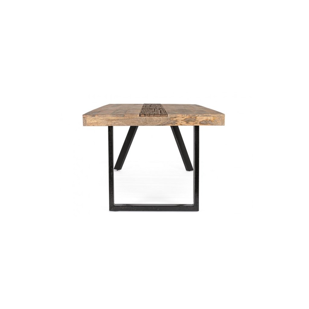 Designový jídelní stůl MANCHESTER od italského výrobce stylového nábytku BIZZOTTO. Stolek je velmi zajímavý kousek a je složený z více materiálů. Vrchní deska je z mangového dřeva, je rozdělena na 2 kusy. Uprostřed je krásný pruh recyklovaného dřeva, zde mohou vznikat jemné prasklinky, díky kterým je každý výrobek unikátní a originální. Černé nohy jsou z kovu. Ke stolu se pohodlně vejde 8 lidí.