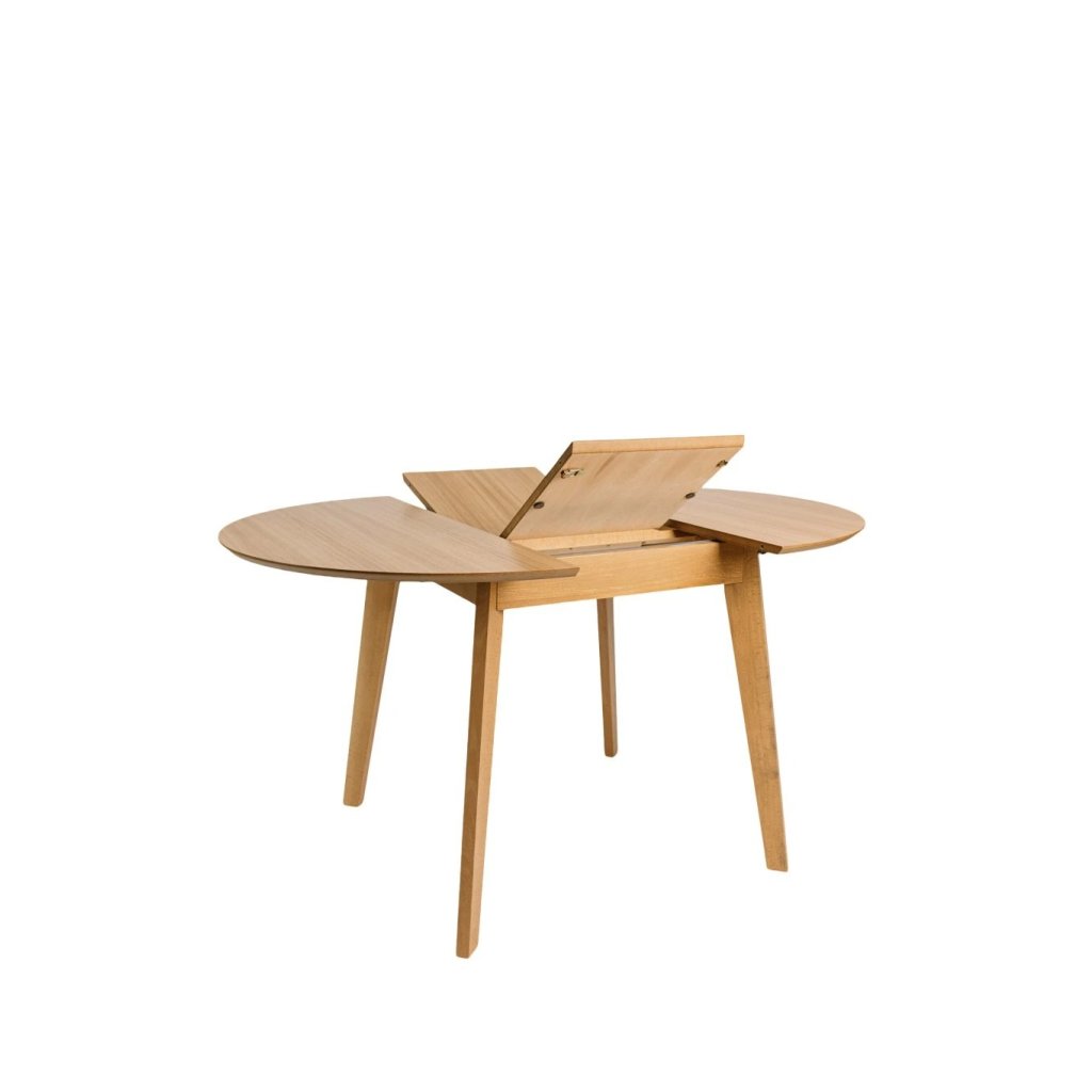 Designový jídelní stůl MARS od českého výrobce kvalitního dřevěného nábytku MURDIA. Stůl MARS je stylovým řešením pro ty, kdo hledají moderní design v kombinaci s přírodní elegancí a praktickým rozkládáním. Stolová deska je vyrobena z kvalitní MDF desky s dubovou dýhou, která věrně imituje vzhled masivního dřeva a zároveň je odolná a snadno udržovatelná. Nohy z bukového masivu zajišťují pevnou konstrukci a dlouhou životnost. Díky jednoduchému rozkládacímu systému se stůl snadno přizpůsobí počtu hostů i velikosti prostoru.