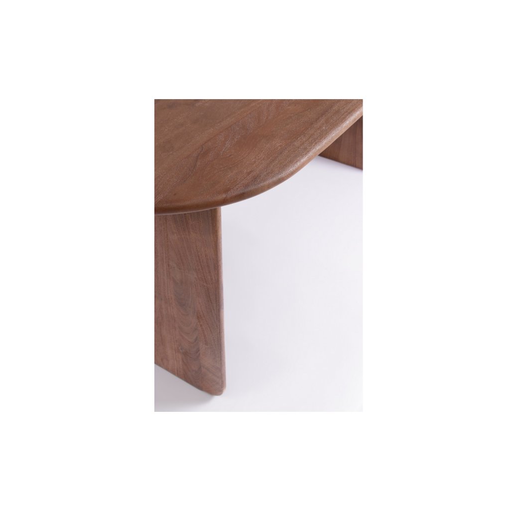 Stůl NAYANA skvěle zapadne do přírodně laděných, rustikálních, boho nebo skandinávských interiérů. Ladí s jídelními židlemi s dřevěným nebo čalouněným sedákem, ale i s kombinací různých materiálů nebo buklé textiliemi. Doplňte ho přírodním běhounem, keramickými vázami, kameninovým nádobím nebo textiliemi v teplých zemitých tónech, které podtrhnou charakter dřeva.