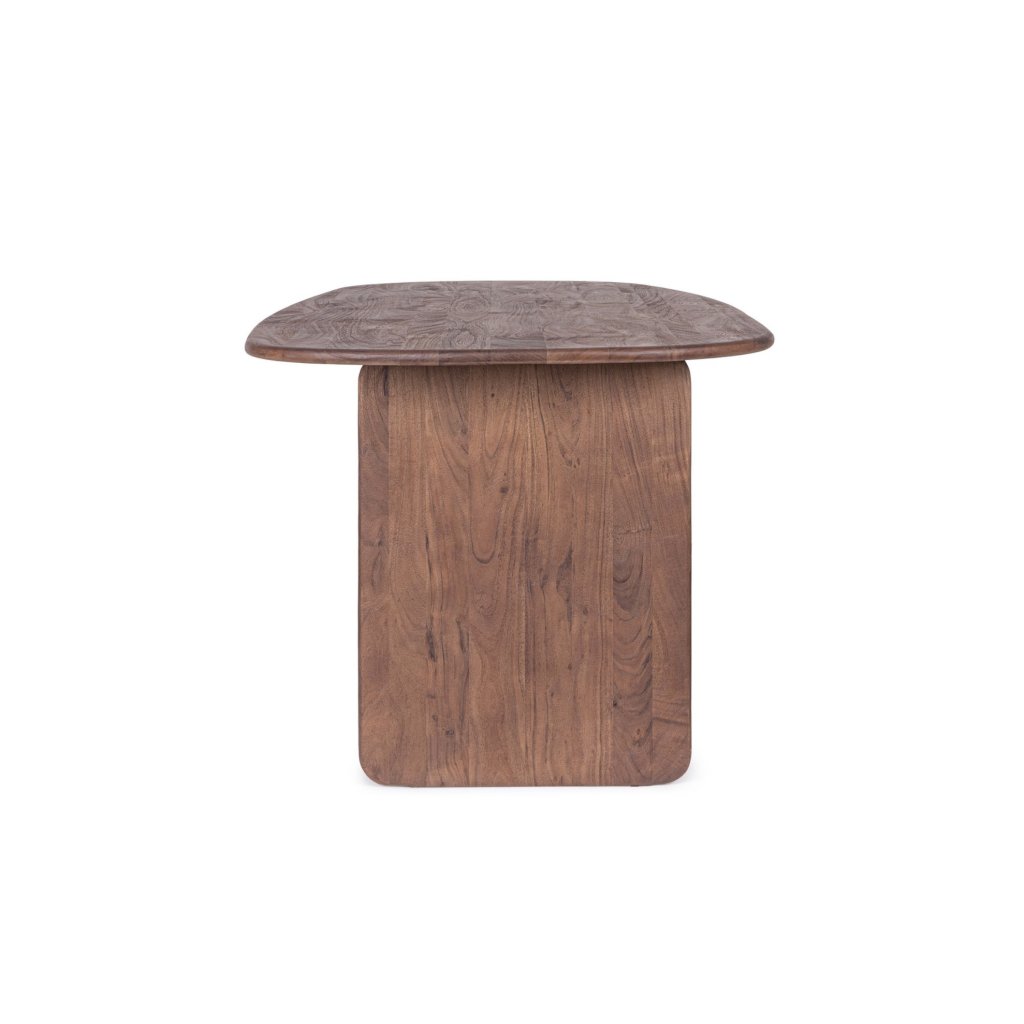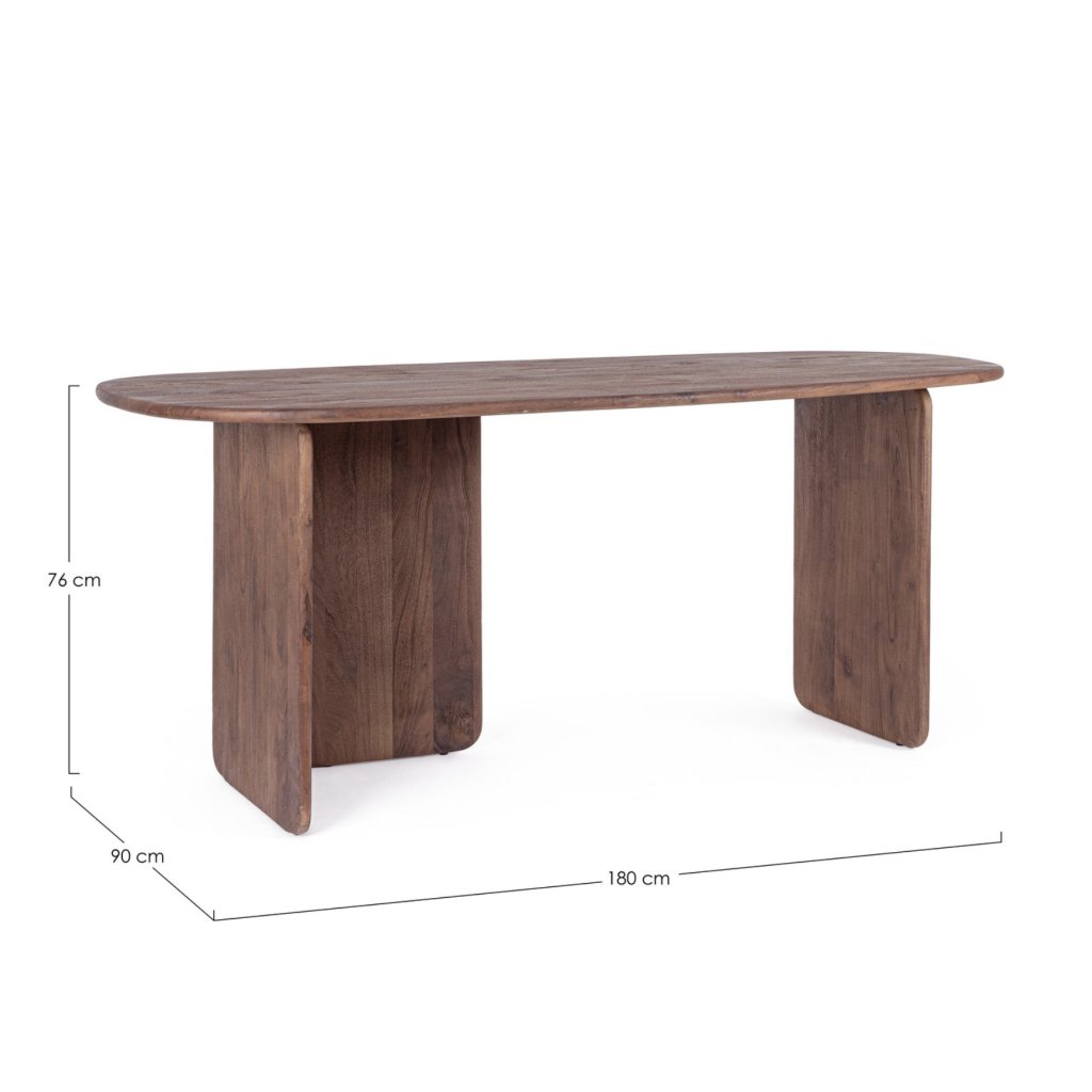Designový jídelní stůl NAYANA od italského výrobce stylového nábytku BIZZOTTO. NAYANA je elegantní a robustní kus nábytku vyrobený z masivního akáciového dřeva, které je známé svou pevností a krásnou přírodní kresbou. Díky pískované povrchové úpravě a finálnímu nitrocelulózovému laku vyniká autentickým, přírodním vzhledem a zároveň je chráněn proti každodennímu opotřebení. S velkorysými rozměry 180x90 cm poskytuje dostatek prostoru a je tak ideální volbou pro rodinné večeře i posezení s přáteli.