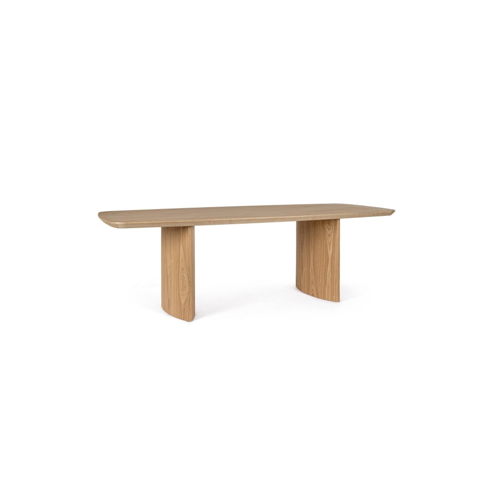 ODELIA je dřevěný jídelní stůl od italského výrobce stylového nábytku BIZZOTTO. Stůl má 2 mohutné desky, které slouží jako nohy z dubového dřeva. Na nohy navazuje krásná vrchní deska s rozměry 240x100 cm, která je vyrobena ze stejného materiálu.