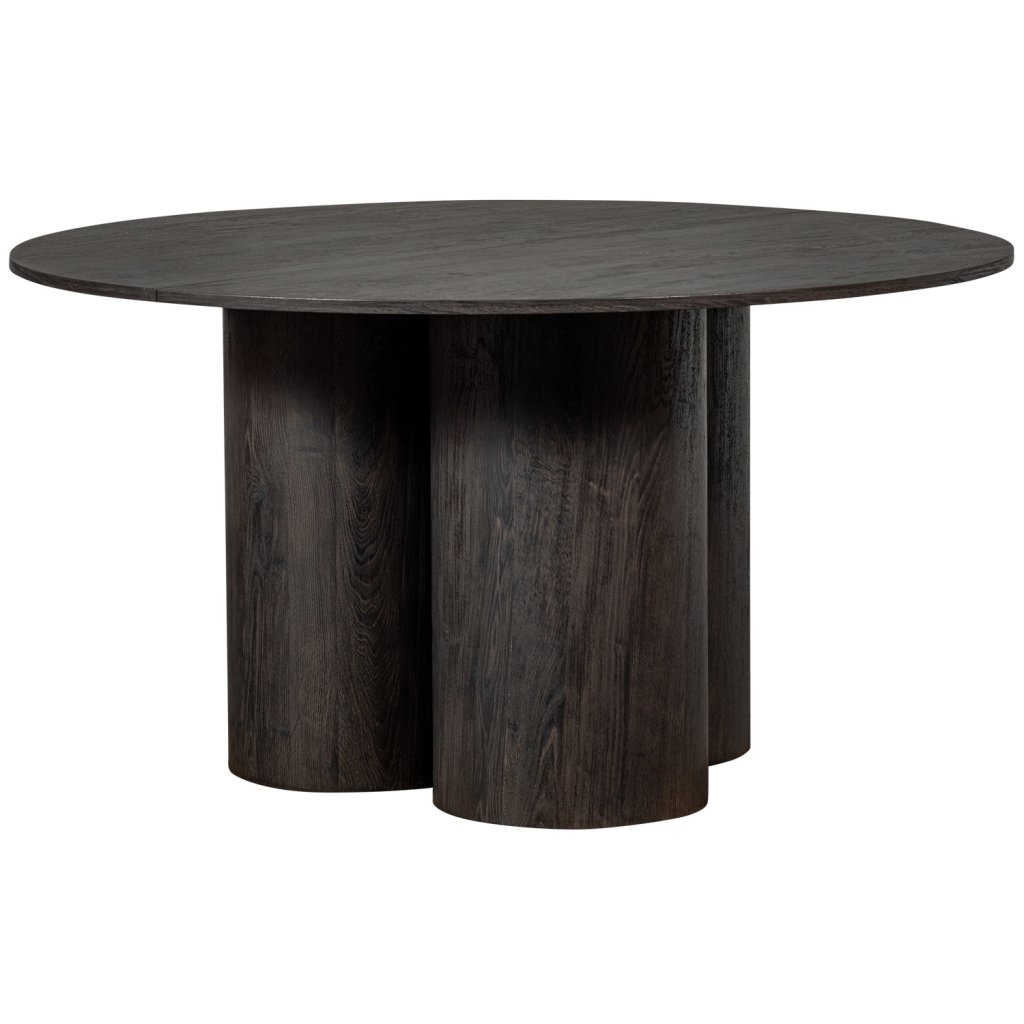 Designový jídelní stůl OONA od holandského výrobce kvalitního nábytku WOOOD. Kulatý jídelní stůl OONA s hravým designem nohou a velkým prostorem o průměru 140 cm nabízí dostatek místa pro 4 osoby. Tmavě hnědý povrch s jasně viditelnou dřevěnou strukturou dodává jídelnímu stolu teplý vzhled a skvěle se hodí do skandinávského nebo boho interiéru.