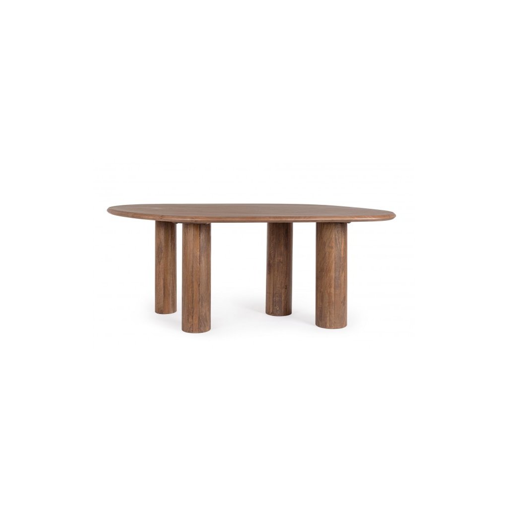 Designový jídelní stůl SANAT od italského výrobce stylového nábytku BIZZOTTO. Stůl SANAT má rám a čtyři mohutné nohy, zajišťující stabilitu, z mangového dřeva. SANAT je finálně upraven lakem na vodní bázi. Deska stolu má organický nepravidelný tvar, který stolu dodává jedinečnost. Doplňte jídelní stůl dalším nábytkem ze stejné kolekce SANAT od výrobce BIZZOTTO pro získání uceleného interiéru.