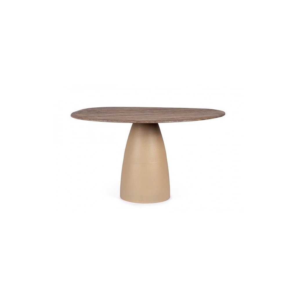 Designový jídelní stůl STANLEY od italského výrobce stylového nábytku BIZZOTTO. STANLEY má desku z mangového dřeva s nepravidelným tvarem s povrchovou úpravou v nitrocelulózovém laku. Stůl má základ z práškové oceli. Deska stolu má rozměry 140x120 centimetrů. Díky svým rozměrům je STANELY ideálním kompaktním stolem pro menší prostory.
