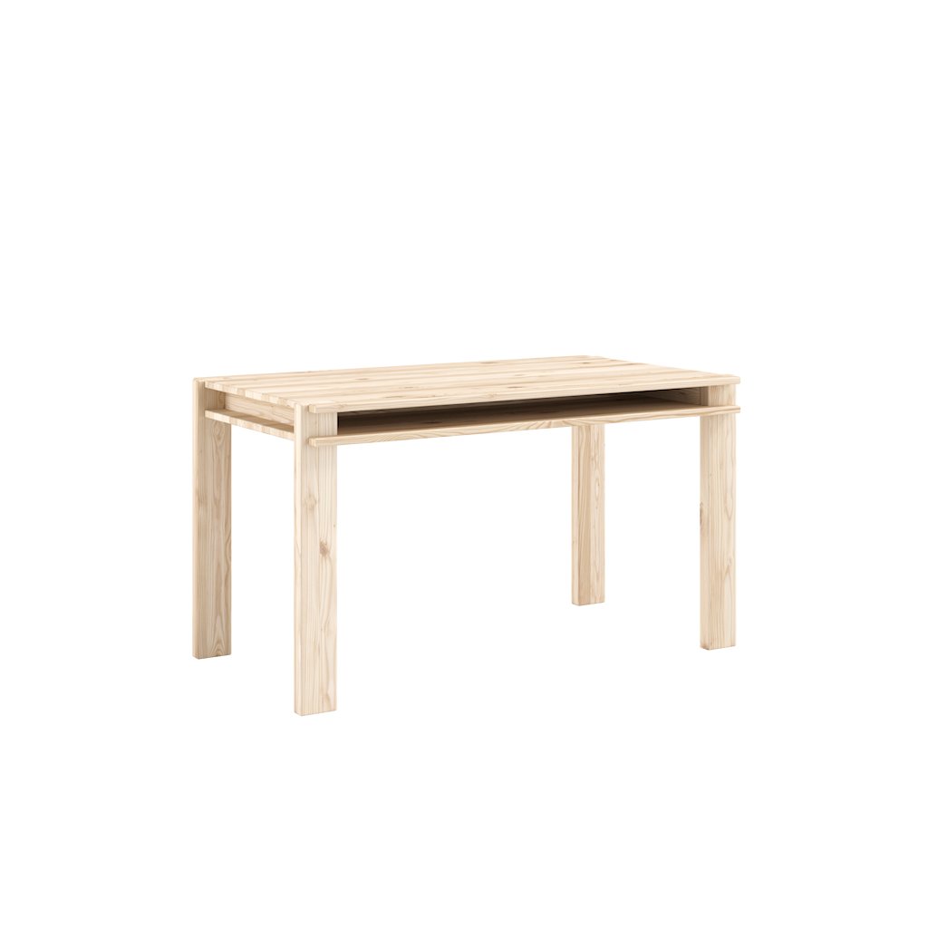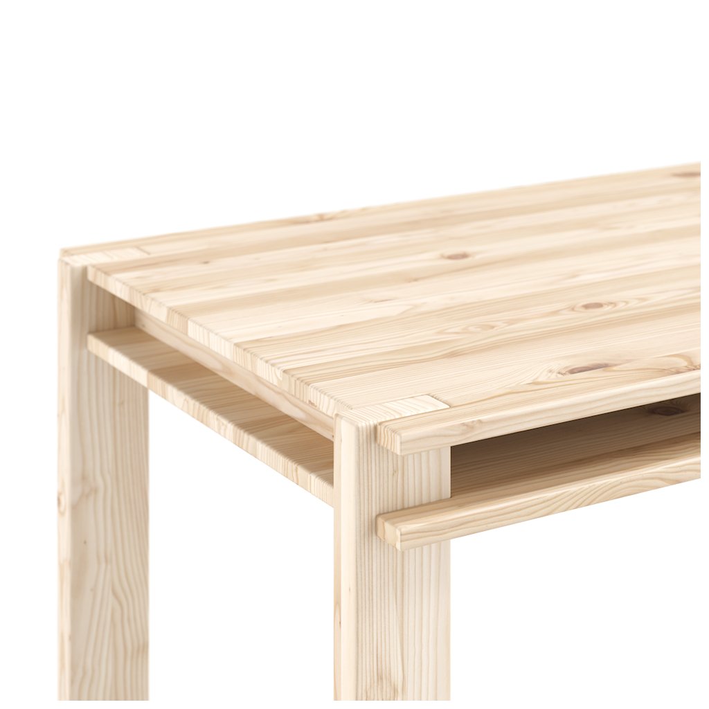 Nádherný jídelní stůl TUCK od dánské značky skandinávského nábytku KARUP DESIGN. Stůl je dodáván s deskou o rozměrech 134x75 cm a je vyroben z masivního borovicového dřeva s FSC certifikací. Přirozená kresba dřeva a viditelné linie podtrhují fakt, že dřevo si zachovává svůj přirozený charakter. Dvojitá deska stolu skrývá nenápadný úložný prostor, ideální pro knihy, notebook nebo drobnosti, které chcete mít po ruce, aniž by rušily pořádek a design místnosti.