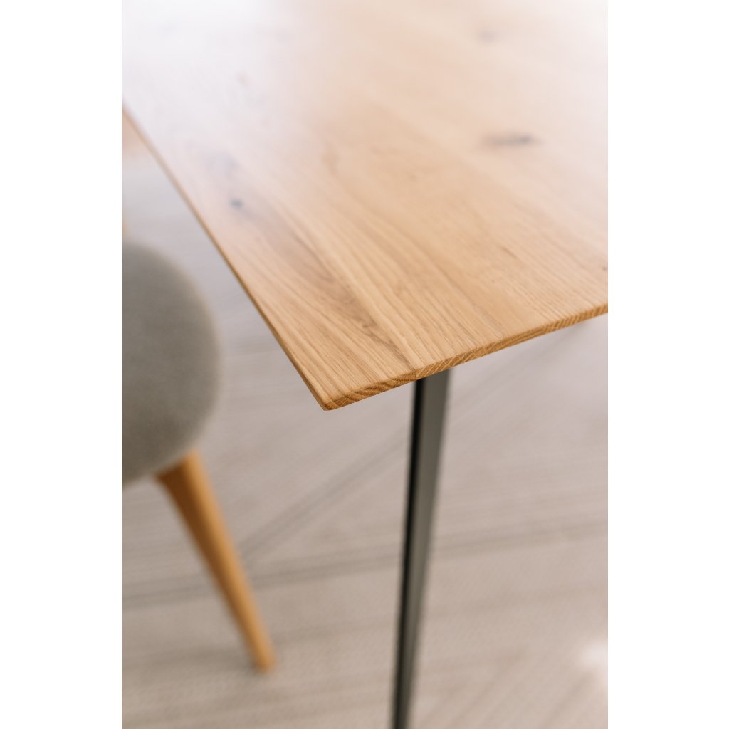 Designový jídelní stůl VENETTI od českého výrobce kvalitního dřevěného nábytku MURDIA. Stůl VENETTI je ukázkou moderní elegance a precizního zpracování. Spojuje v sobě masivní dubovou desku, ošetřenou přírodním olejem, a stylové kovové nohy, které mu dodávají stabilitu i výrazný charakter. Díky pečlivému výběru materiálů a důrazu na každý detail je stůl navržen tak, aby vyhověl i těm nejnáročnějším požadavkům na vzhled, kvalitu a funkčnost. VENETTI poskytuje dostatek prostoru pro pohodlné stolování a stane se dominantním prvkem každé jídelny či společenského prostoru.